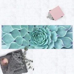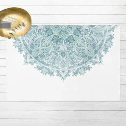 WallArt Vinyl-Teppich – Mandala Aquarell Ornament Halbkreis Türkis In Türkis
