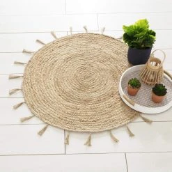 Dekorativer Teppich aus Jute, Ø 80 cm, rund mit Fransen der angesehenen Marke Atmosphera Créateur d’intérieur ist ein ausgezeichnetes dekoratives Element, das in jedem Haus notwendig ist. Der Teppich ist ideal für Wohnzimmer, Schlafzimmer, Flur, Küche und sogar Badezimmer. Mithilfe des Teppichs werden Sie den Innenraum-Look schnell erwärmen und ihm einen gemütlichen Charakter verleihen.