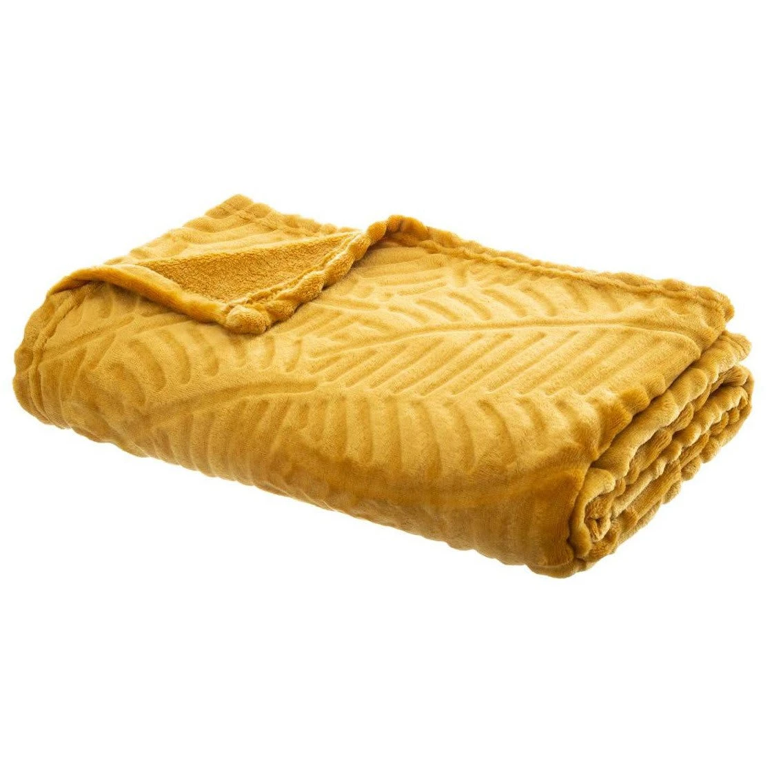 Decke für Bett, Couch, Wohnzimmer Tagesdecke, 3D Palmblatt Effekt, gelb Die flauschige Decke der französischen Firma Atmosphera mit den Maßen 150 x 125 cmist eine ideale Wahl für diejenigen, die sowohl die Qualität als auch den Komfort der Verwendung des Produkts schätzen. Das Plaid ist aus strapazierfähigem Polyester, was seine Haltbarkeit im Vergleich zu Baumwolldecken erhöht oder aus anderen Materialien genäht. Die angenehmen Fasern, die bei der Herstellung verwendet werden, sind angenehm im Griff und garantieren Wärme.