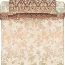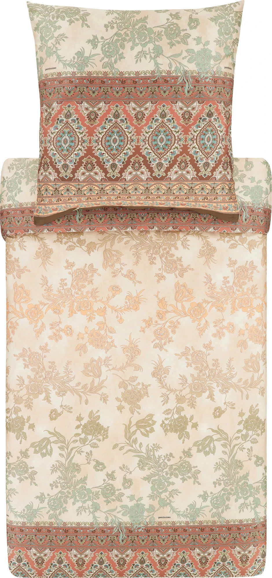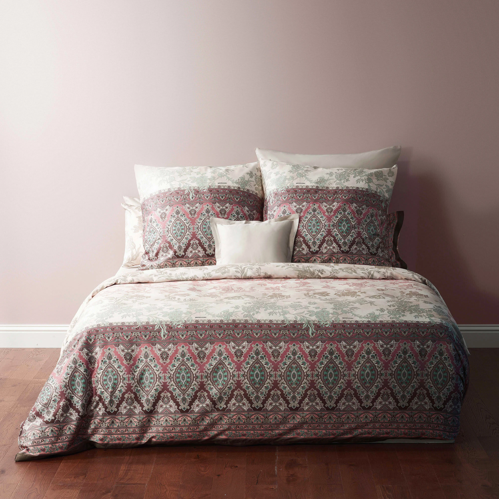 Bassetti Feinsatin Bettwäsche “Agrigento”. Dieses Dessin ist eine Neuinterpretation traditioneller indischer Stoffe. Filigrane Blumen im Farbverlauf werden von einer großflächigen, markanten Paisley-Bordüre mit dekorativen Ziereinfassungen ergänzt. Kissenbezug in Wendeoptik. Die Farbbrillanz kommt auf dem seidigen Gewebe mit edlem Schimmer hervorragend zur Geltung. Feinste gekämmte, mercerisierte Garne ergeben eine Luxusqualität, von der Sie sich gerne verwöhnen lassen. Mit praktischem Reißverschluss für einfaches Beziehen.
