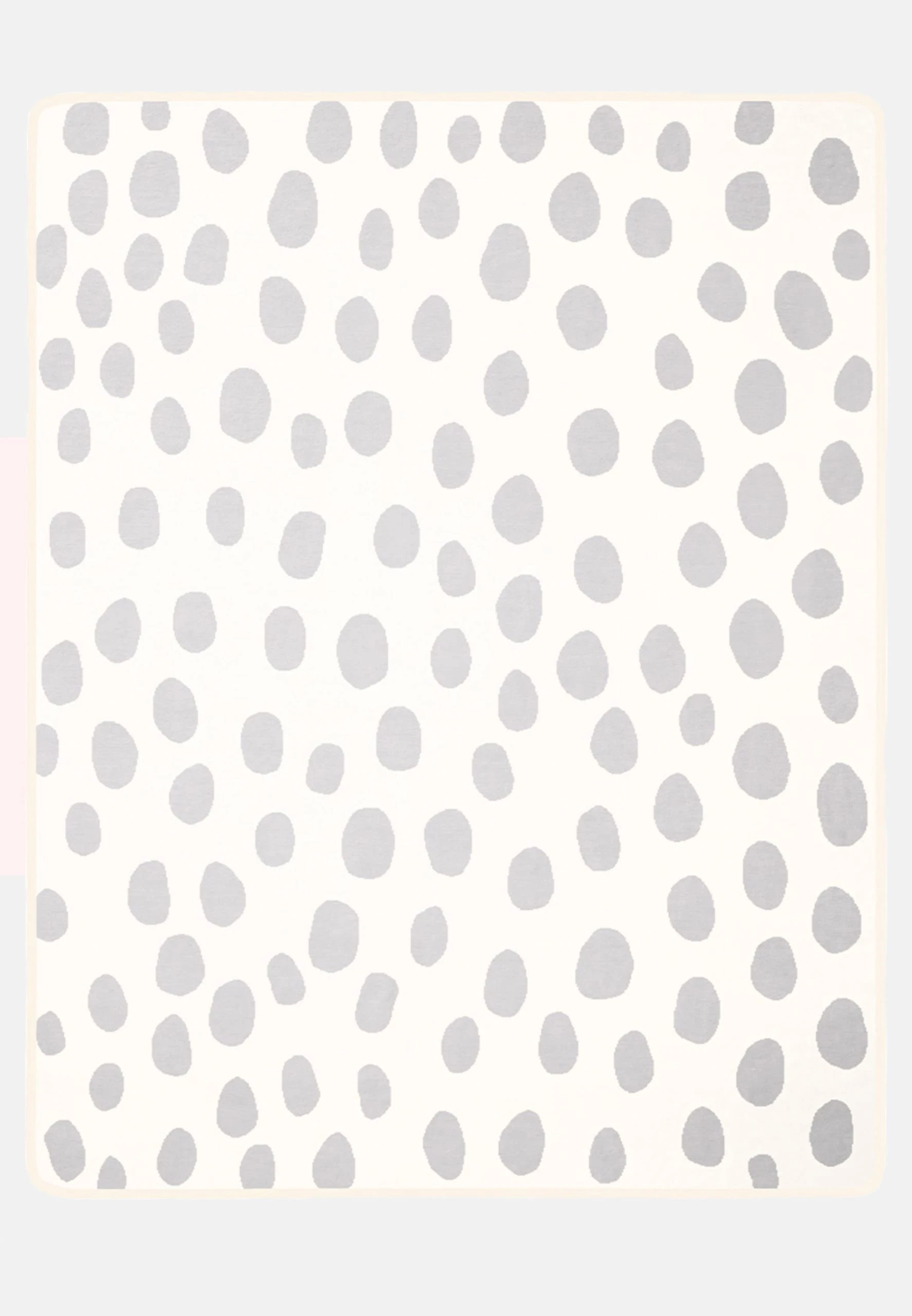 Hochwertige Babydecke mit hohem Baumwollanteil. Die weiche Decke ist ausgesprochen hautfreundlich und ideal für Babys und Kleinkinder. Mit ihrer praktischen Größe von 75×100 cm ist die pflegeleichte, gewebte Kinderdecke zuhause und unterwegs ein kuscheliger Begleiter. Eingefasst ist sie mit einem modernen Overlock-Stich, der per Hand an der Decke vernäht wurde. Ihr hübsches Allover-Tupfen-Design sorgt für süße Träume.