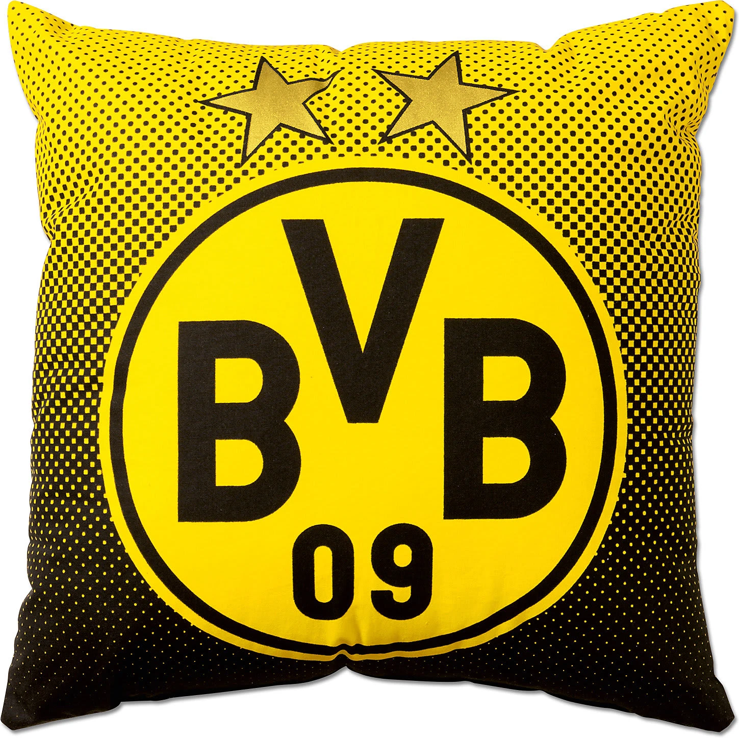 Der Anblick des BVB-Kissens erfüllt jeden Borussen mit Stolz auf die Erfolge von Borussia Dortmund und lädt zum Träumen ein. Das Kissen hat einen Farbverlauf von Gelb zu Schwarz. Auf dem Kissen ist das BVB Logo mit den zwei Sternen abgebildet.