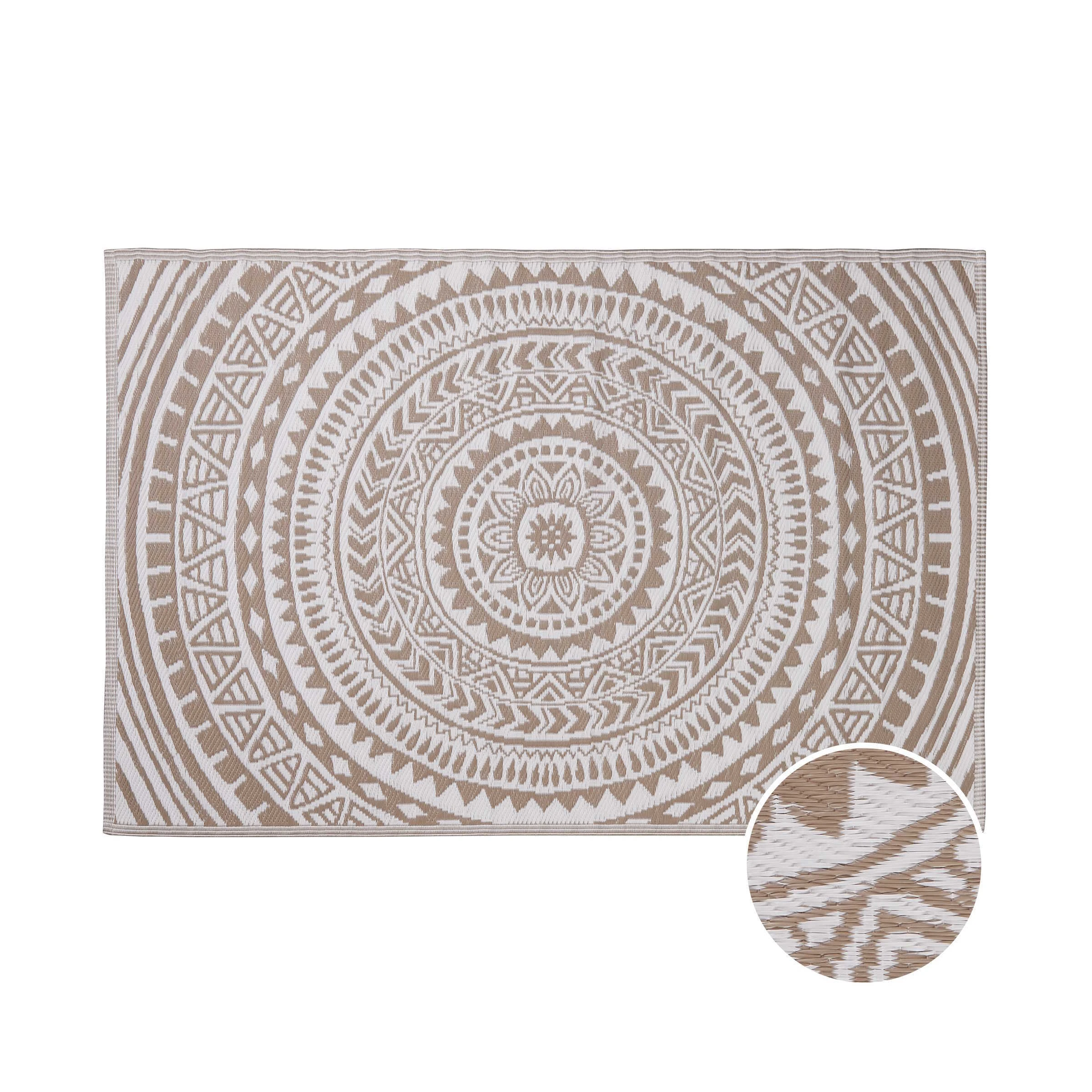Weil Sie auf wohnlich und zugleich pflegeleicht stehen, legen Sie sich den modernen Colour Clash Outdoorteppich mit beige-weißem Circle-Muster und Bastteppich-Struktur zu Füßen. Und das nicht nur auf Ihrem Balkon oder Ihrer Terrasse, sondern gerne auch indoor im Wohnbereich. So läuft es sich drinnen wie draußen spürbar angenehm. Aus robustem Kunststoffgewebe, UV-beständig.
