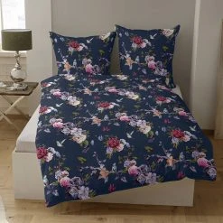 Verwandeln Sie Ihr Schlafzimmer mit der romantischen Bettwäsche Belana von Casatex in eine Wohlfühloase. Die dunkelblaue Garnitur mit filigranen Ästen voller Blüten und Vögeln sorgen für eine aufmunternde Atmosphäre in Ihren eigenen vier Wänden. Kuscheln Sie sich in die glatte und anschmiegsame Satin Oberfläche aus 100 Prozent Baumwolle und genießen Sie einen komfortablen und erholsamen Schlaf.