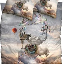 Casatex Satin Bettwäsche “Africa”. Das witzige Motiv mit Elefant, Zebra, Lemur und Luftballons beflügelt Ihre Fantasie und lädt zum Träumen ein. Durch den hochwertigen Digitaldruck bleiben die Farben dauerhaft schön. Gerne lassen Sie sich von der seidigen Qualität verführen, erkennbar am edlen Schimmer und dem feinen, weichen Griff. Sie ist dicht gewebt und atmungsaktiv, ein hautschmeichelnder Genuss, der zum Hineinkuscheln einlädt. Bequem zu beziehen dank praktischem Reißverschluss.