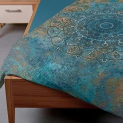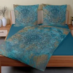 Sorgen Sie mit der Bettwäsche Sleep Tight von Casatex für eine romantische und angenehme Atmosphäre in Ihrem Schlafzimmer. Ein kunstvoll gestaltetes Mandala auf blaufarbenem Hintergrund zaubert einen Hauch Orient in Ihre vier Wände. Kuscheln Sie sich in die glatte und anschmiegsame Satin Oberfläche aus 100 Prozent Baumwolle und genießen Sie einen komfortablen und erholsamen Schlaf.