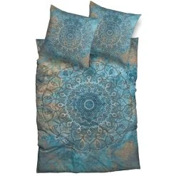 Sorgen Sie mit der Bettwäsche Sleep Tight von Casatex für eine romantische und angenehme Atmosphäre in Ihrem Schlafzimmer. Ein kunstvoll gestaltetes Mandala auf blaufarbenem Hintergrund zaubert einen Hauch Orient in Ihre vier Wände. Kuscheln Sie sich in die glatte und anschmiegsame Satin Oberfläche aus 100 Prozent Baumwolle und genießen Sie einen komfortablen und erholsamen Schlaf.
