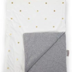 Diese Babydecke kann gewendet werden, so dass sie sich einfarbig oder mit schönen, leicht schimmernden Punkten zeigt. Die Decke besteht aus angenehmem Baumwolljersey.