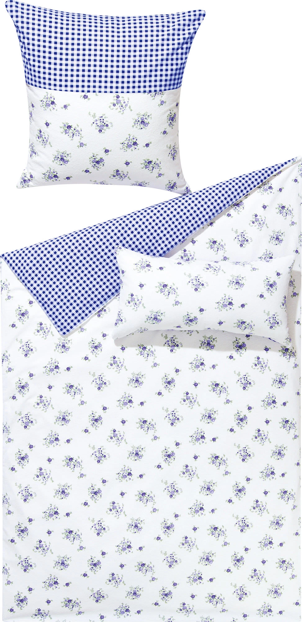 Dyckhoff Weichfrottier-Wendebettwäsche. In einem lieblichen Blumen-Dessin, das von nostalgischen Vichy-Karos auf der Gegenseite komplettiert wird. Fühlen Sie die atmungsaktive Ganzjahresbettwäsche herrlich weich auf Ihrer Haut und lassen Sie sich von dem wunderbaren Schlafklima verwöhnen. Die strapazierfähige Materialmischung besteht an der dem Körper zugewandten Seite aus reiner Baumwolle. Pflegeleicht, bügelfrei und mit praktischem Reißverschluss für schnelles Beziehen ausgestattet.