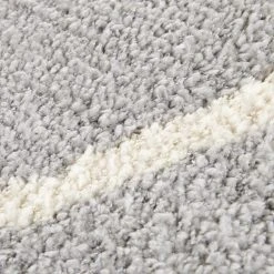 Der ELLE Decoration Design Teppich Vienne in Silbergrau Creme verzückt durch seine asymetrische und kontrastreiche Musterung.