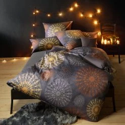 Erwin Müller Mako-Interlock-Jersey Bettwäsche. Mandalas gelten als Quelle der Ruhe und Kraft. Das moderne Muster in zurückhaltenden Farben wirkt entspannend und lädt zum Träumen ein. Durch den hochwertigen Digitaldruck behalten die leuchtenden Farben ihre Brillanz und Beständigkeit. Mit Wendekissenbezug. Schnell finden Sie in der schmuseweichen Ganzjahresqualität zu ruhigem, erholsamem Schlaf, denn sie ist ausgesprochen fein im Griff und verwöhnt mit einem angenehmen Hautgefühl. Dank seiner temperaturausgleichenden Eigenschaften umgibt Sie der geschmeidige, atmungsaktive und besonders saugfähige Stoff mit einem ausgezeichneten Schlaklima. Aus feinsten supergekämmten und mercerisierten Baumwoll-Garnen. Pflegeleicht, bügelfrei, verzugsfrei und einfach zu beziehen durch den praktischen Reißverschluss.
