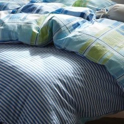 Erwin Müller Seersucker Kissenbezug in Wendeoptik. Moderne Karos einerseits, schmale Streifen andererseits – das harmonisch aufeinander abgestimmte Farbkonzept integriert sich bestens in Ihr Ambiente. Gerade im Sommer sorgt die luftig leichte, hautsympathische und temperaturausgleichende Qualität mit dem dauerhaften Kreppeffekt für eine optimale Luftzirkulation. Auch die unkomplizierte Handhabung, schnell trocknend und bügelfrei, wird Sie begeistern. Einfaches Beziehen dank praktischem Reißverschluss.