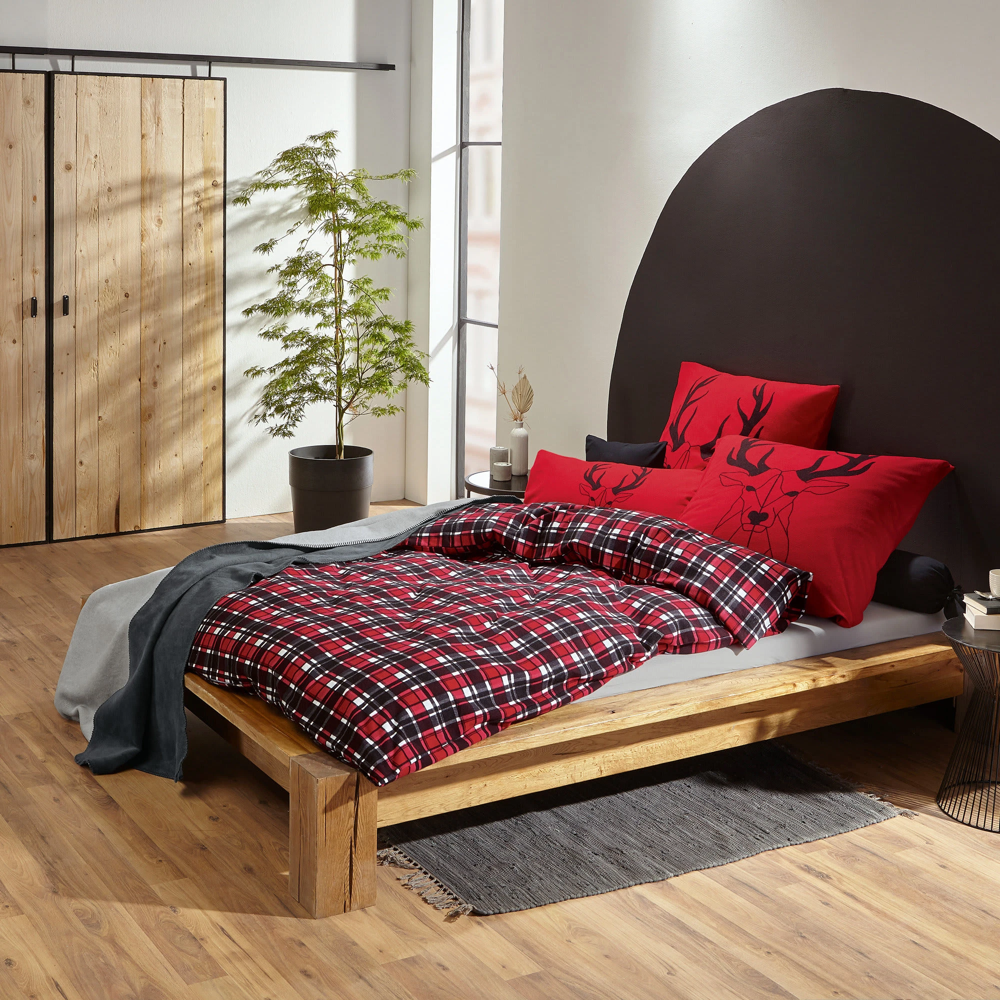 Erwin Müller Flanell Kissenbezug. Pure Gemütlichkeit und Landlust strahlt der charmante Kissenbezug aus. Sehr originell wirkt der Mix aus Karos und dem modernen Hirsch-Motiv. Gern lassen Sie sich von dem samtig angerauten Stoff verwöhnen. Ein kuscheliger Genuss, der in der kalten Jahreszeit wohlige Wärme verbreitet. Diese Qualität ist temperaturausgleichend, hautsympathisch, weich und flauschig. Einfaches Be- und Abziehen gewährleistet der praktische Reißverschluss.