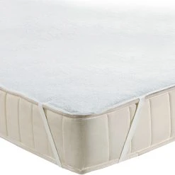 Erwin Müller wasserdichte Frottee-Matratzenauflage. Der weiche, strapazierfähige Stoff überzeugt durch seine hohe Feuchtigkeitsaufnahme. So wird der gesamte Matratzenbereich geschont. Die Fix-Spannauflage ist temperaturausgleichend und sorgt für ein angenehmes Schlafklima. Hautsympathisch, atmungsaktiv und feuchtigkeitsabsorbierend. Auf der Unterseite befindet sich eine Nässesperre aus Polyurethan. Rundum mit Bandeinfassung. Dank Übereck-Gummibänder schnell und mühelos aufgezogen für einen festen Halt auf der Matratze. Kochfest und trocknergeeignet.