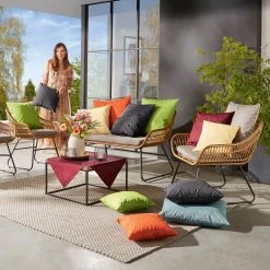 Erwin Müller Outdoor-Kissenhülle “Terrassa”. Zeitlos schön zeigt sich die elegante Serie. Ihr jacquardgewebtes Blätter-Motiv kommt durch den zarten Schimmer dezent zur Geltung. Diese pflegeleichte Serie sorgt nicht nur im Innen-, sondern auch im Außenbereich auf Balkon oder Terrasse für ein angenehmes Ambiente. Dank hochwertiger Beschichtung und Oberflächenversiegelung ist die strapazierfähige Kissenhülle schmutzabweisend und lässt sich feucht abwischen. Bei Bedarf kann sie in der Waschmaschine gewaschen werden (keinen Weichspüler verwenden!). Bügelbar bei niedriger Temperatur auf der Rückseite. Einfaches Be- und Abziehen dank Reißverschluss.