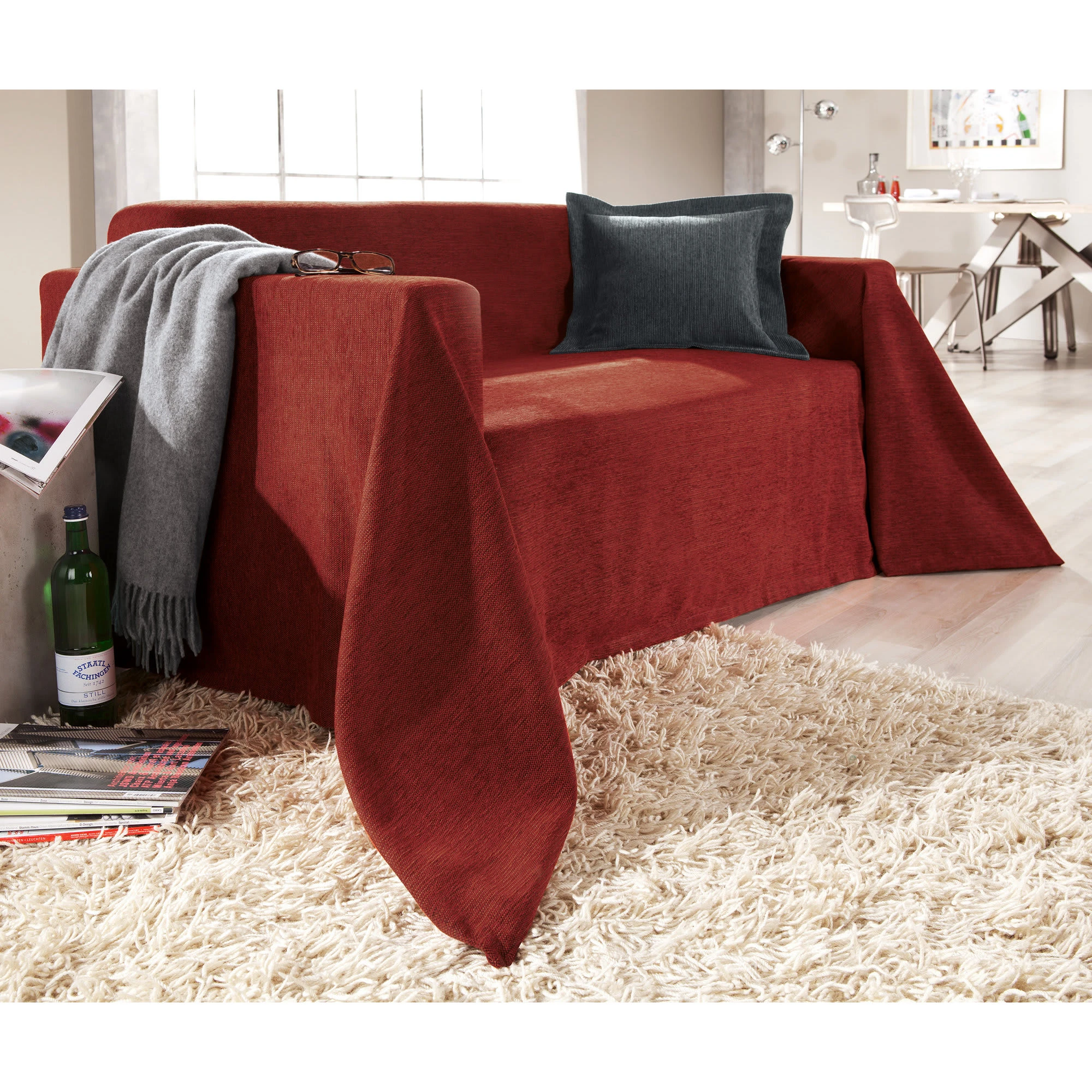Erwin Müller Chenille-Jacquard Sessel- und Sofaüberwurf. Das samtige Gewebe in moderner Melange-Optik verbreitet eine wohnliche Atmosphäre. So werden Ihre Sitzmöbel vor Schmutz, Staub und Verschleiß geschützt. Mit aufwendigem Kuvertsaum gearbeitet.