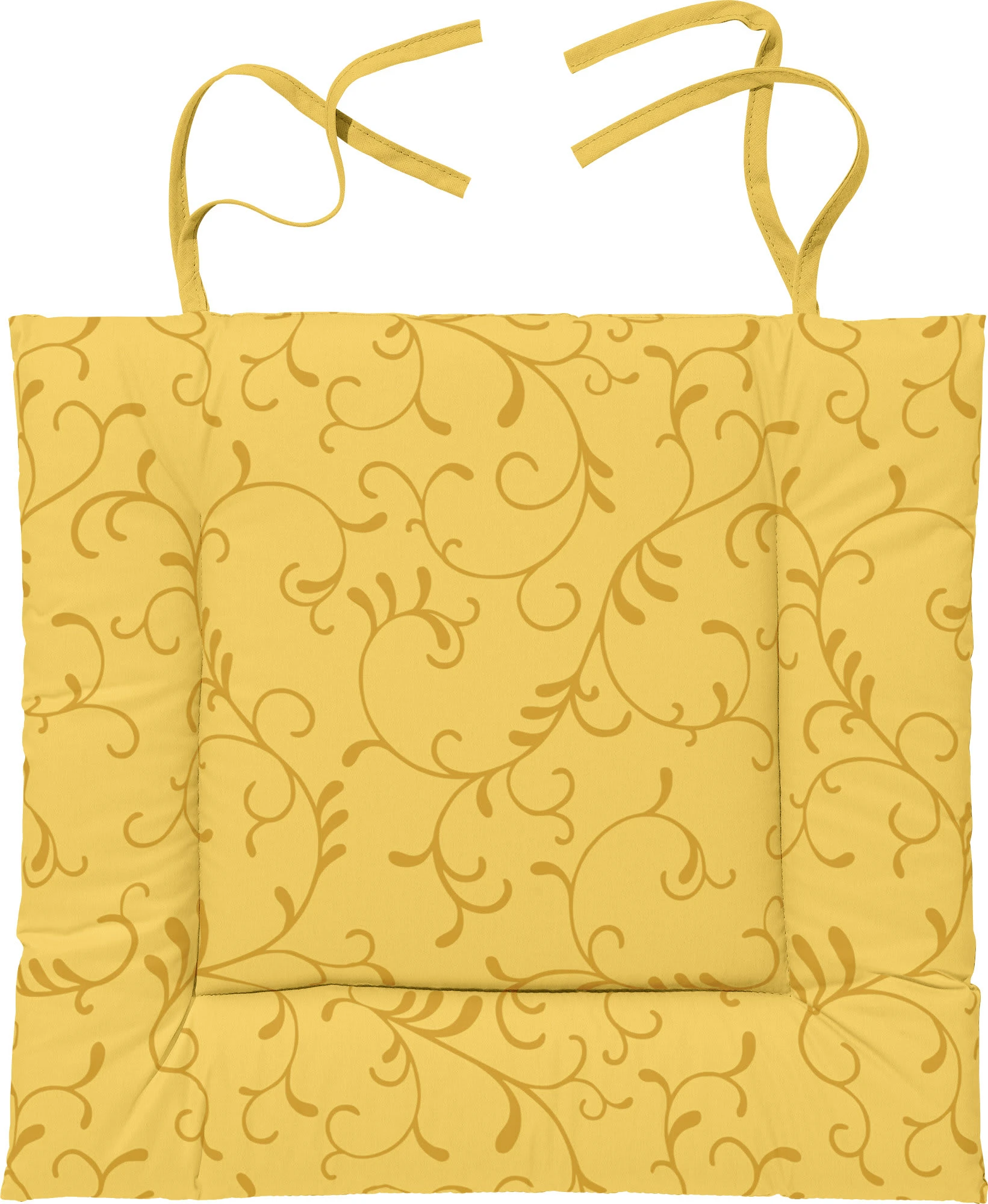 Erwin Müller abwaschbares Stuhlkissen “Essen” mit Bindebändern. Die Serie präsentiert sich im zeitlos schönen Rankenmuster. Ideal im Innen- und geschützten Außenbereich. Dank der wasserundurchlässigen Beschichtung lassen sich Flecken einfach feucht abwischen oder bei Bedarf in der Maschine waschen (keinen Weichspüler verwenden!). Beidseitig nutzbar und durch die Bindebänder ganz einfach zu befestigen. Innen weich gefüllt.