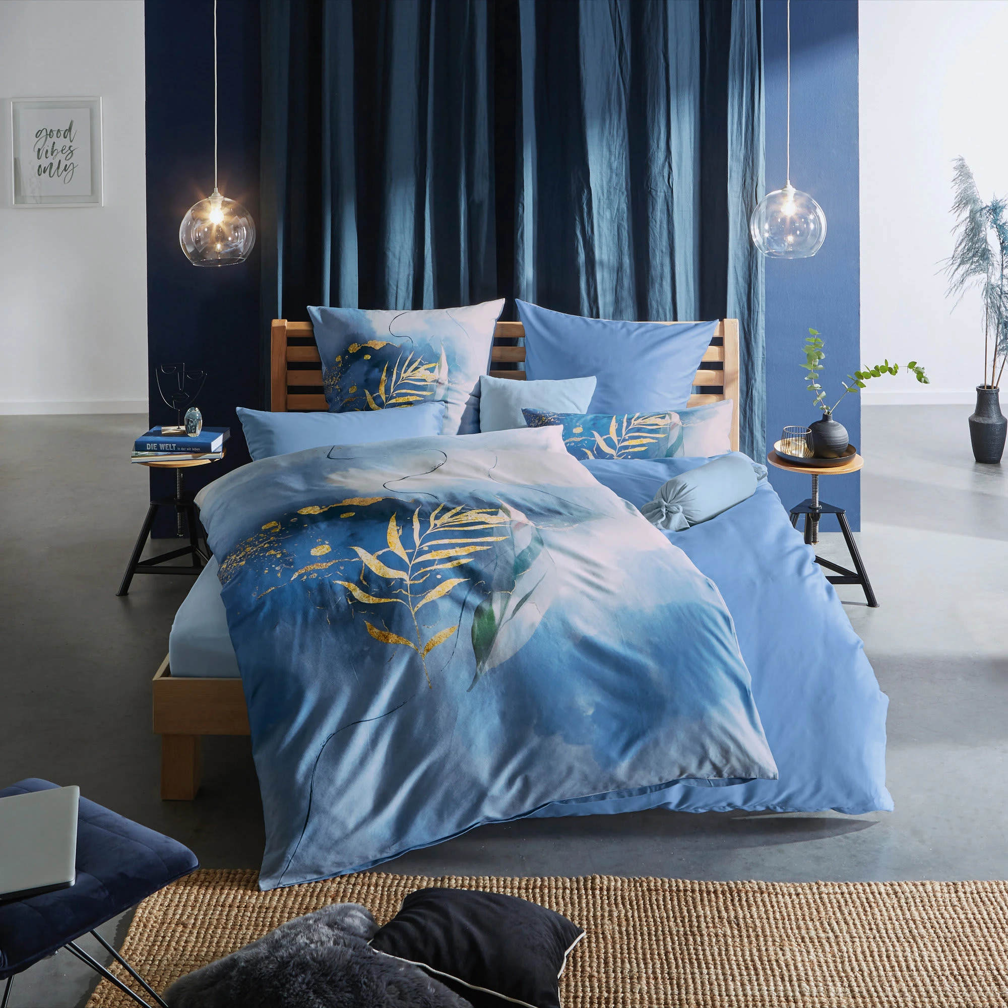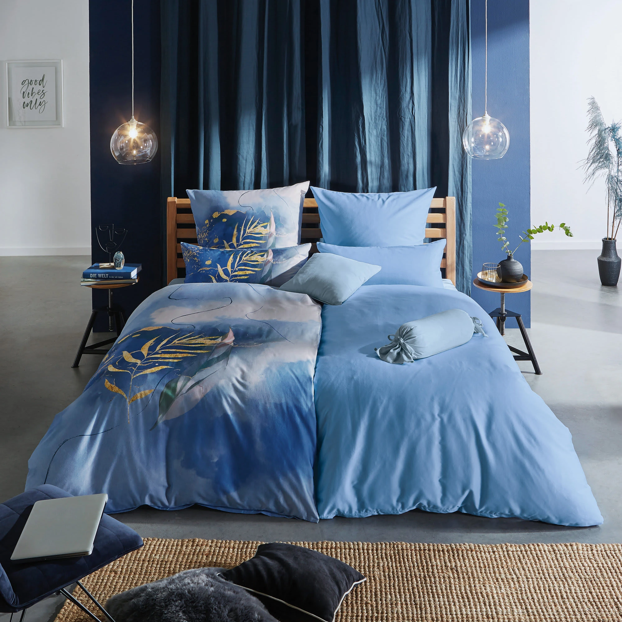 Erwin Müller Mako-Satin Wendebettwäsche. Ein Motiv voller Fantasie und Ausdrucksstärke. Es lädt zum Träumen ein und gestaltet Ihr Bett zum besonderen Blickfang. Durch den hochwertigen Digitaldruck bleiben die Farben dauerhaft schön. Die Rückseite in Uni bietet Spielraum für schöne Wendevarianten. Lassen Sie sich vom ersten Griff an von dem feinfädigen, streichelzarten Gewebe begeistern. Es verführt durch seinen edlen Schimmer und umgibt Sie mit einem traumhaften Schlafklima. Dabei ist es temperaturausgleichend, atmungsaktiv und schafft ein sanftes Hautgefühl. Unkompliziertes Beziehen verspricht der praktische Reißverschluss.