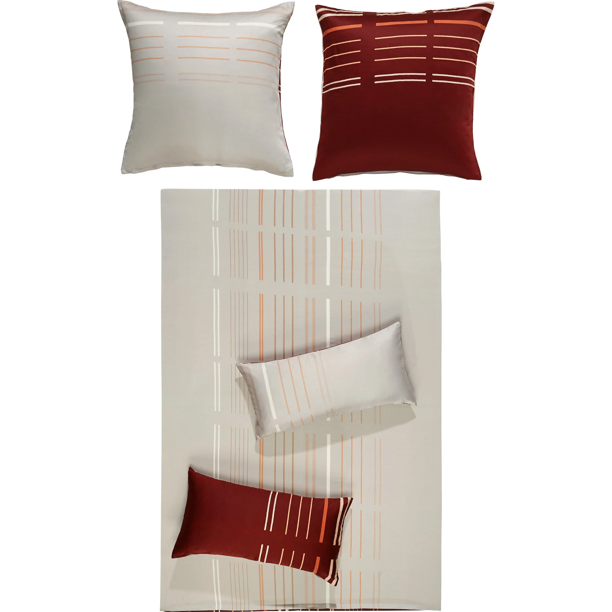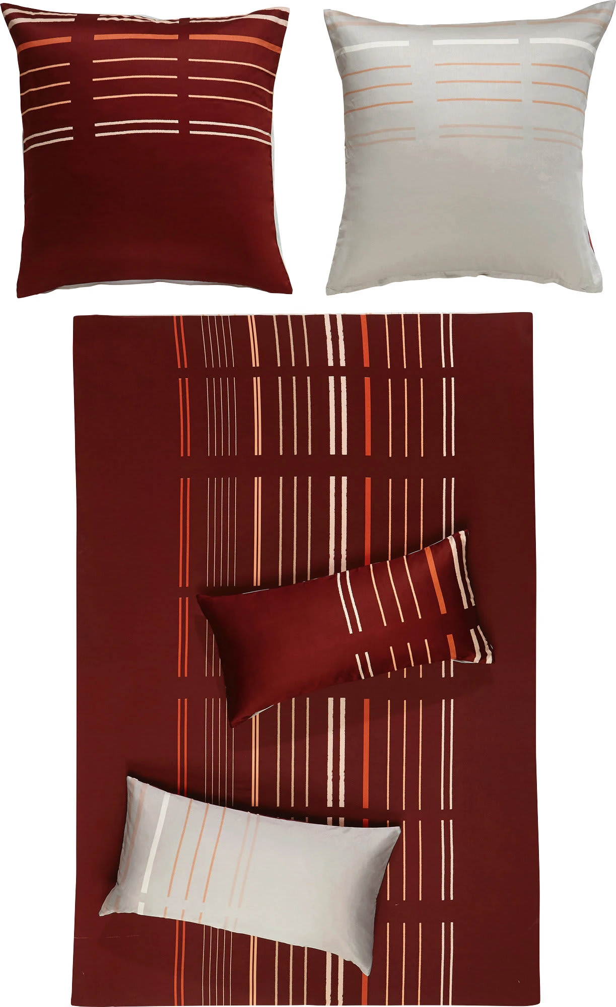 Erwin Müller Mako-Satin Wendebettwäsche. Lassen Sie sich von dem modernen Streifen-Look in zwei attraktiven Farbstellungen begeistern. Er strahlt Klasse und Stil in Ihrem Schlafambiente aus. Das Dessin kommt auf dem seidig glänzenden Gewebe aus feinsten gekämmten und mercerisierten Baumwoll-Garnen wunderschön zur Geltung. Der sinnliche Stoff ist eine Wohltat auf Ihrer Haut. Er ist sehr feinfädig, dichtgewebt und atmungsaktiv, Sie umgibt ein angenehmes Schlafklima. Einfach zu beziehen dank praktischem Reißverschluss.