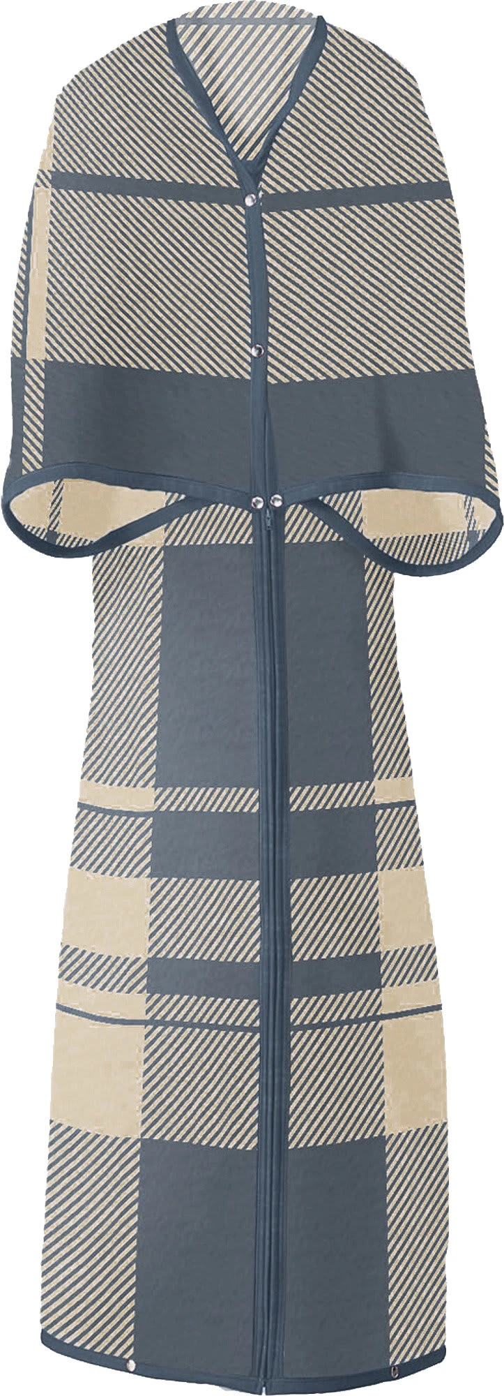 Erwin Müller Jacquard Wohnmantel. Klassische Karos in zurückhaltenden Farben strahlen wohnliche Gemütlichkeit aus. Durch den Zusatz von Druckknöpfen und einem Reißverschluss zaubern Sie sich aus einer gewöhnlichen Wohndecke einen wohlig wärmenden Wohnmantel. Genießen Sie optimale Bewegungsfreiheit und lassen Sie sich von der pflegeleichten Qualität verwöhnen, denn sie ist warm, atmungsaktiv, hautfreundlich und temperaturausgleichend.