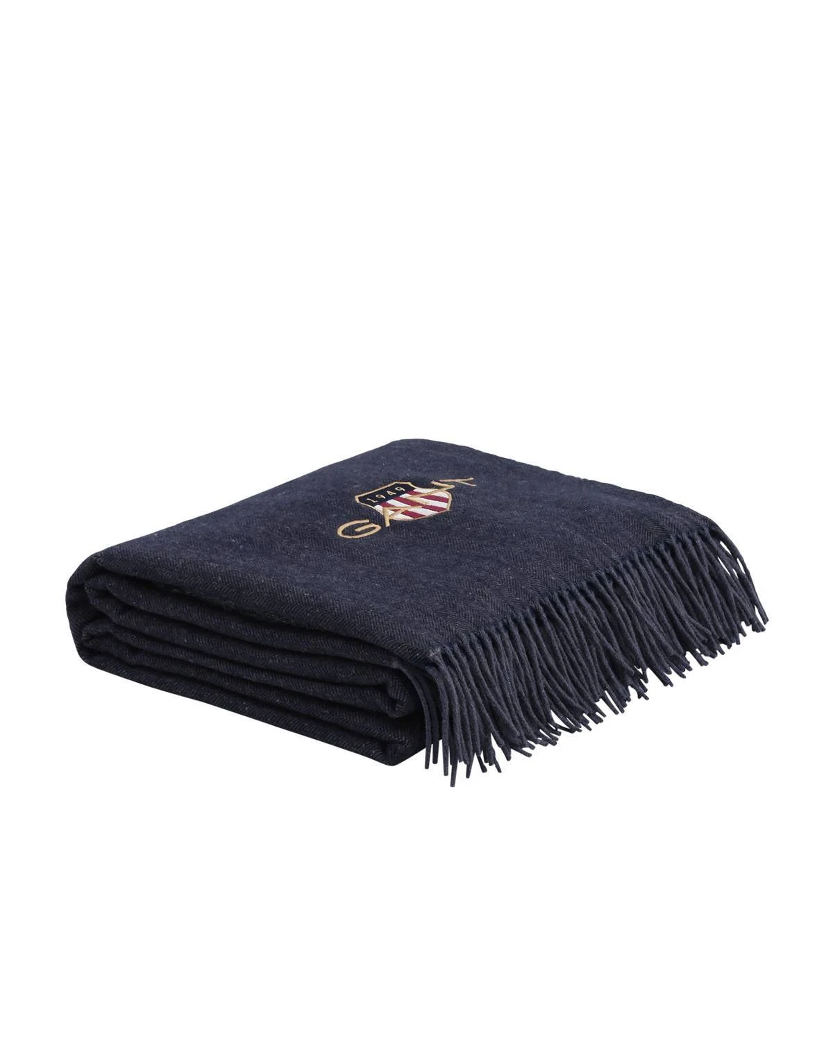 Einfarbige Decke mit seitlichen Fransen und GANT Logo-Stickerei.