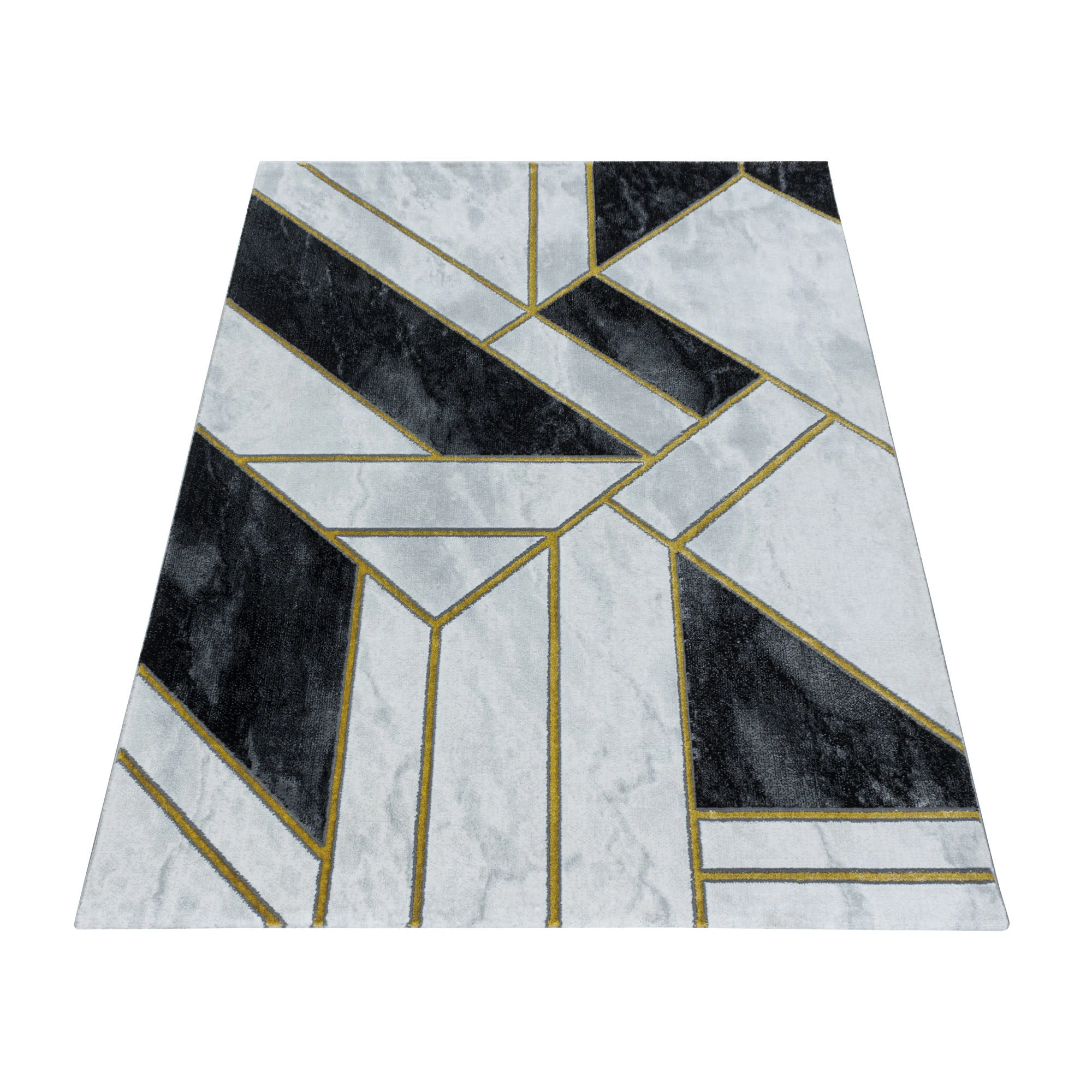 Dieser schöne Designerteppich besticht mit seinem marmorierten Hintergrund
