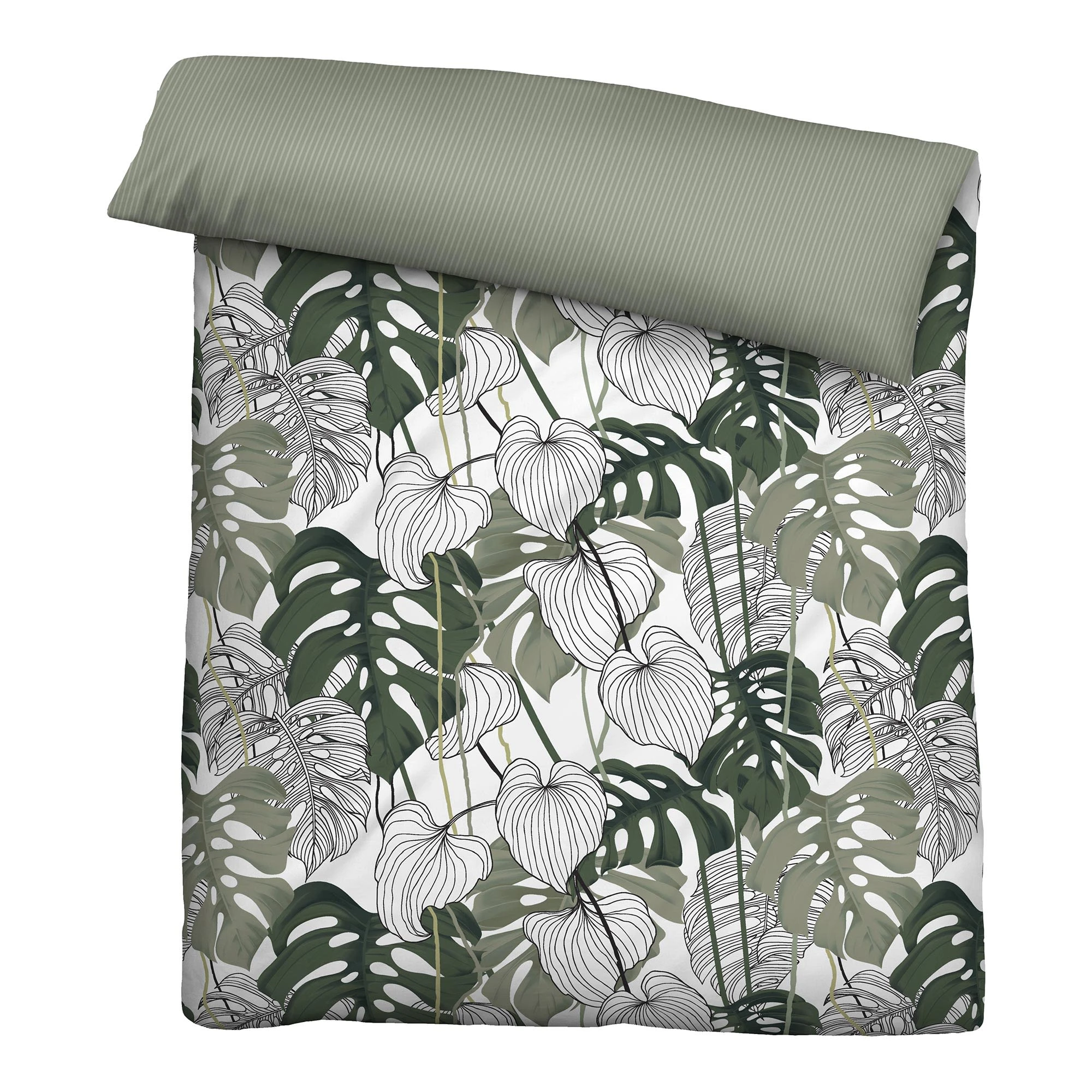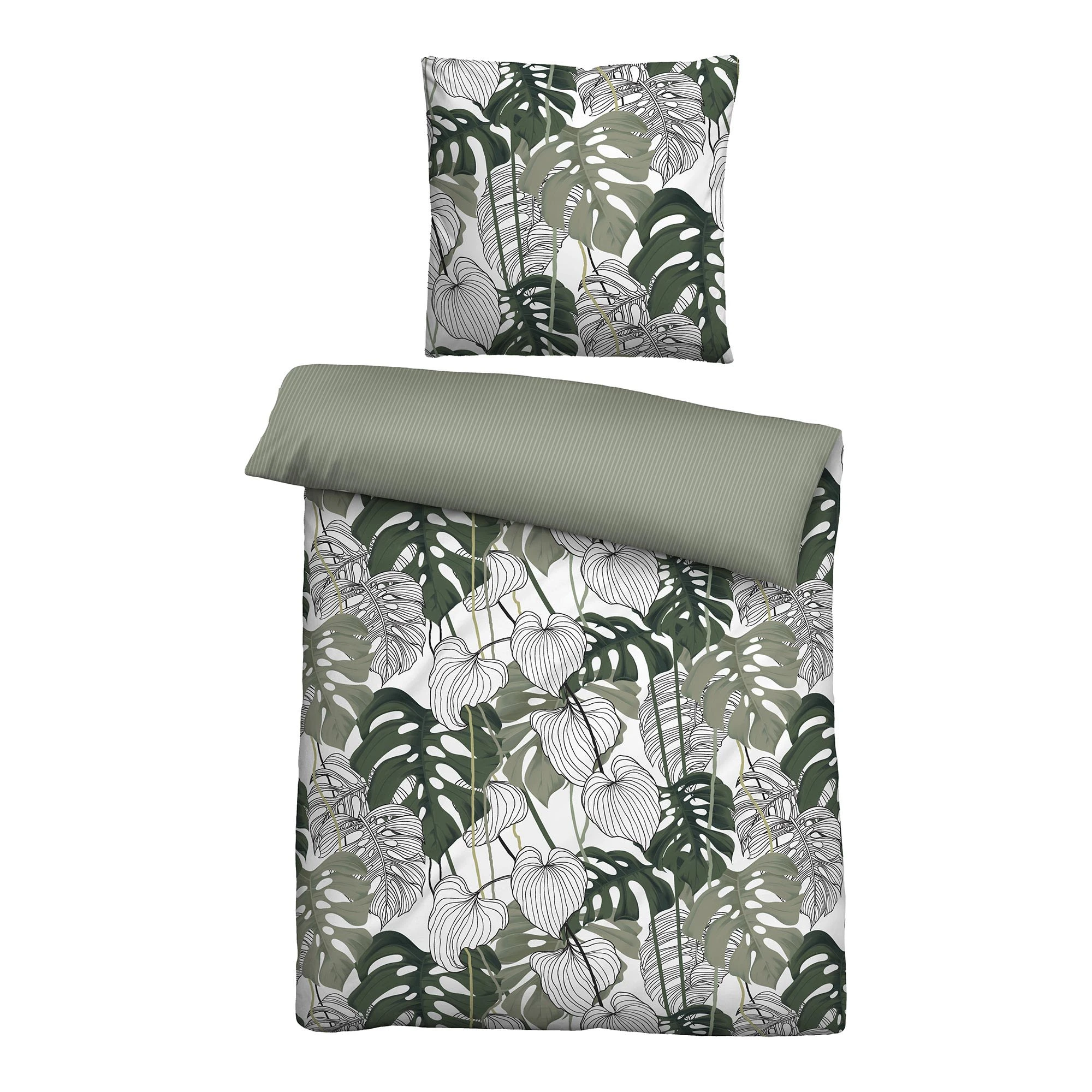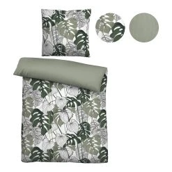 Die Bettgarnitur besteht zu 100 % aus strapazierfähiger und atmungsaktiver Baumwolle.