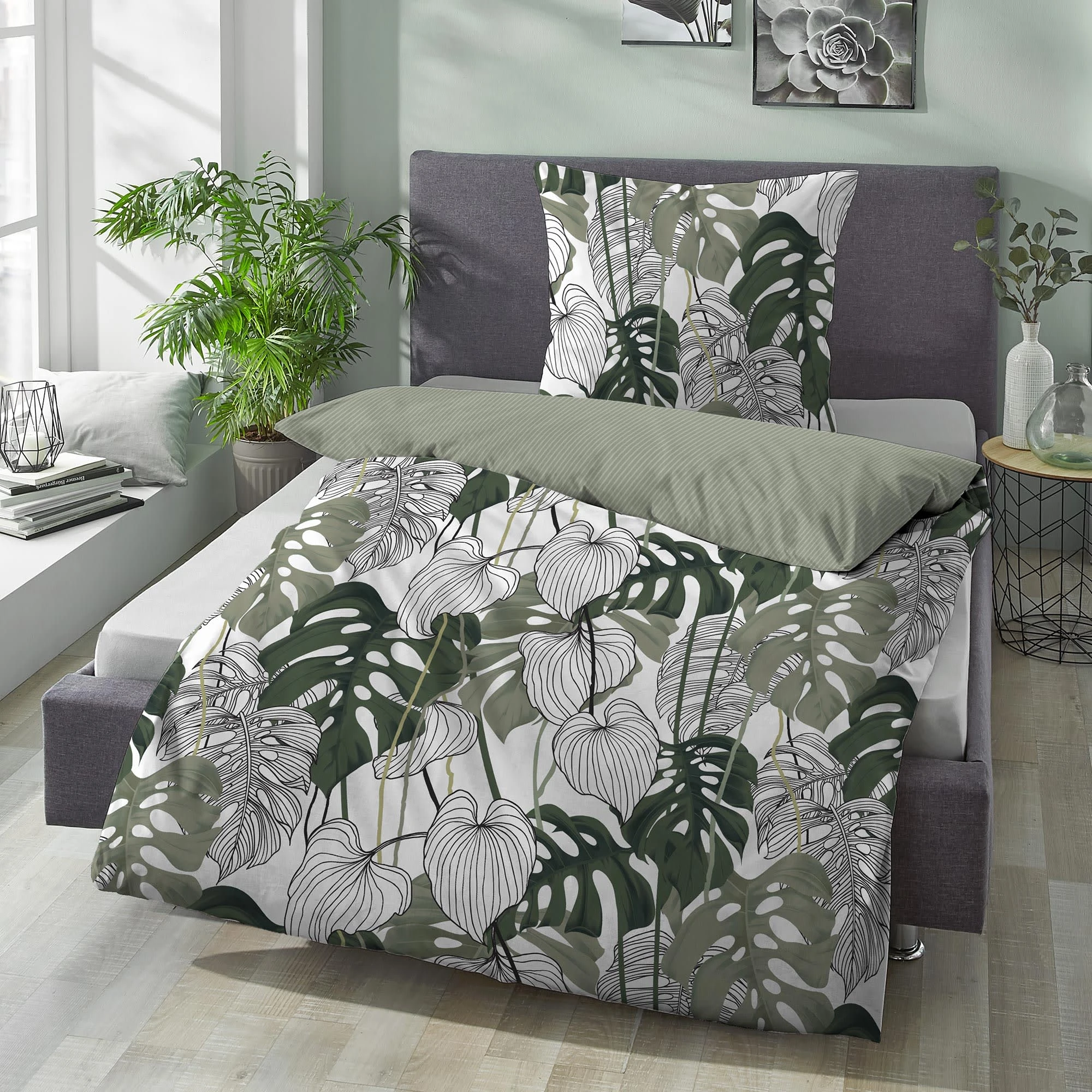 Die hautfreundliche Baumwoll-Renforce Wendebettwäsche GAYA besitzt auf beiden Seiten unterschiedliche Motive.