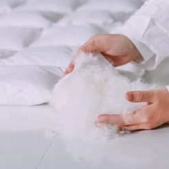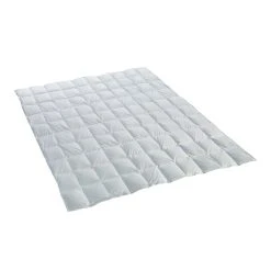 Die Daunen in der Füllung sorgen für eine gute Wärmeisolation, nehmen Feuchtigkeit auf und geben sie an die Raumluft ab.