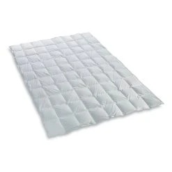 Die Daunen in der Füllung sorgen für eine gute Wärmeisolation, nehmen Feuchtigkeit auf und geben sie an die Raumluft ab.