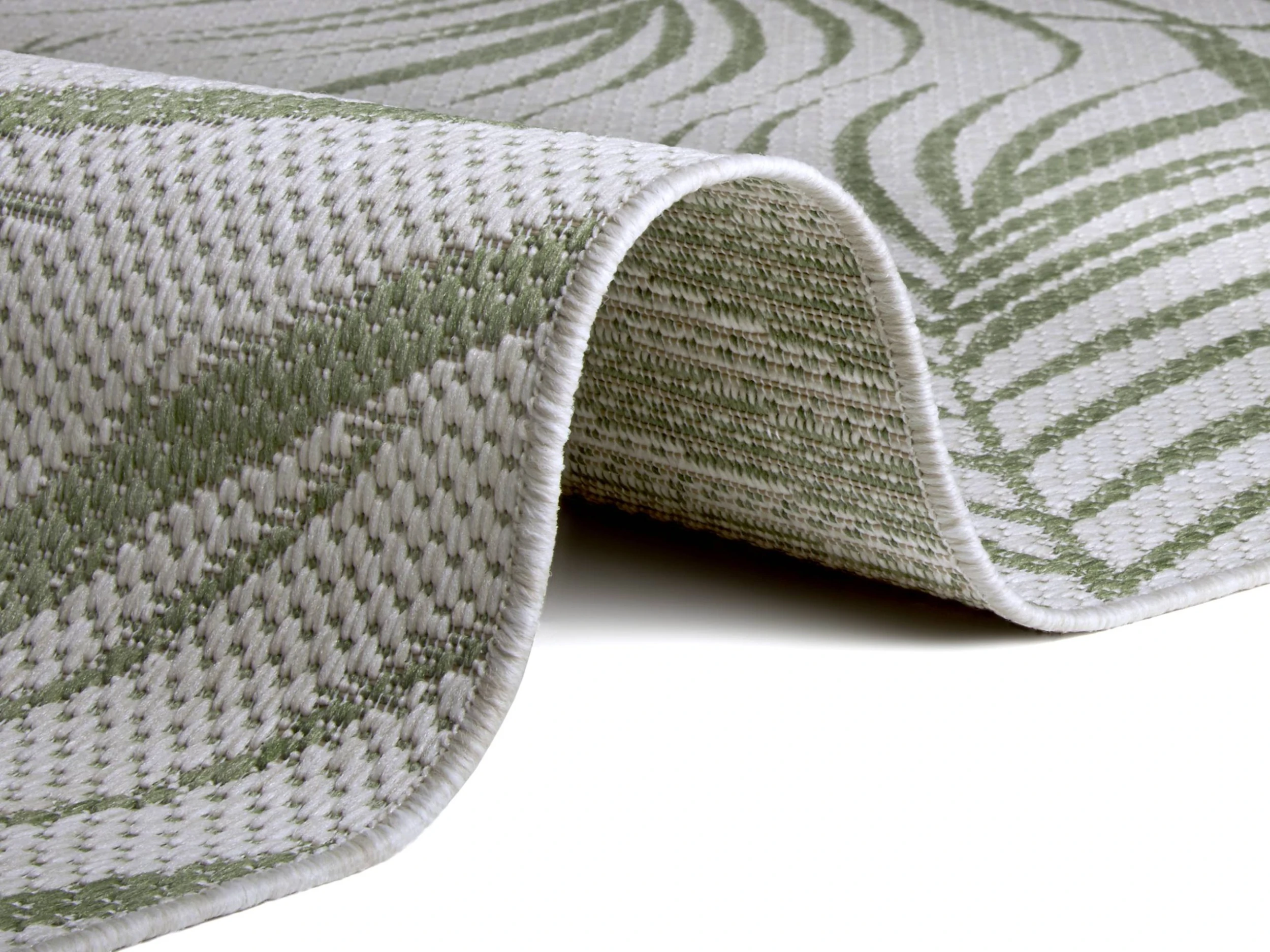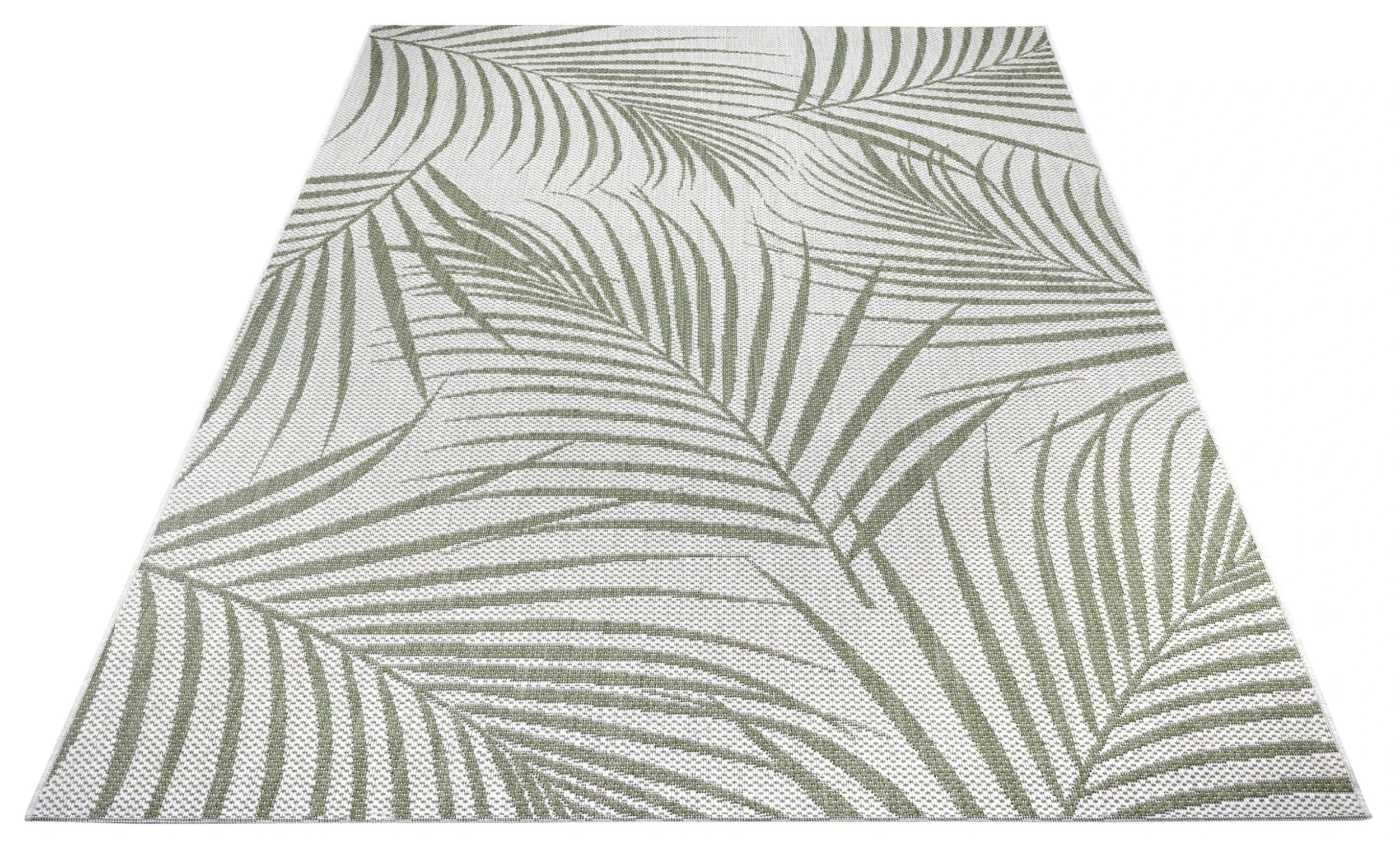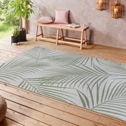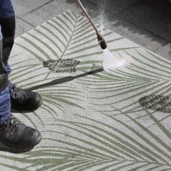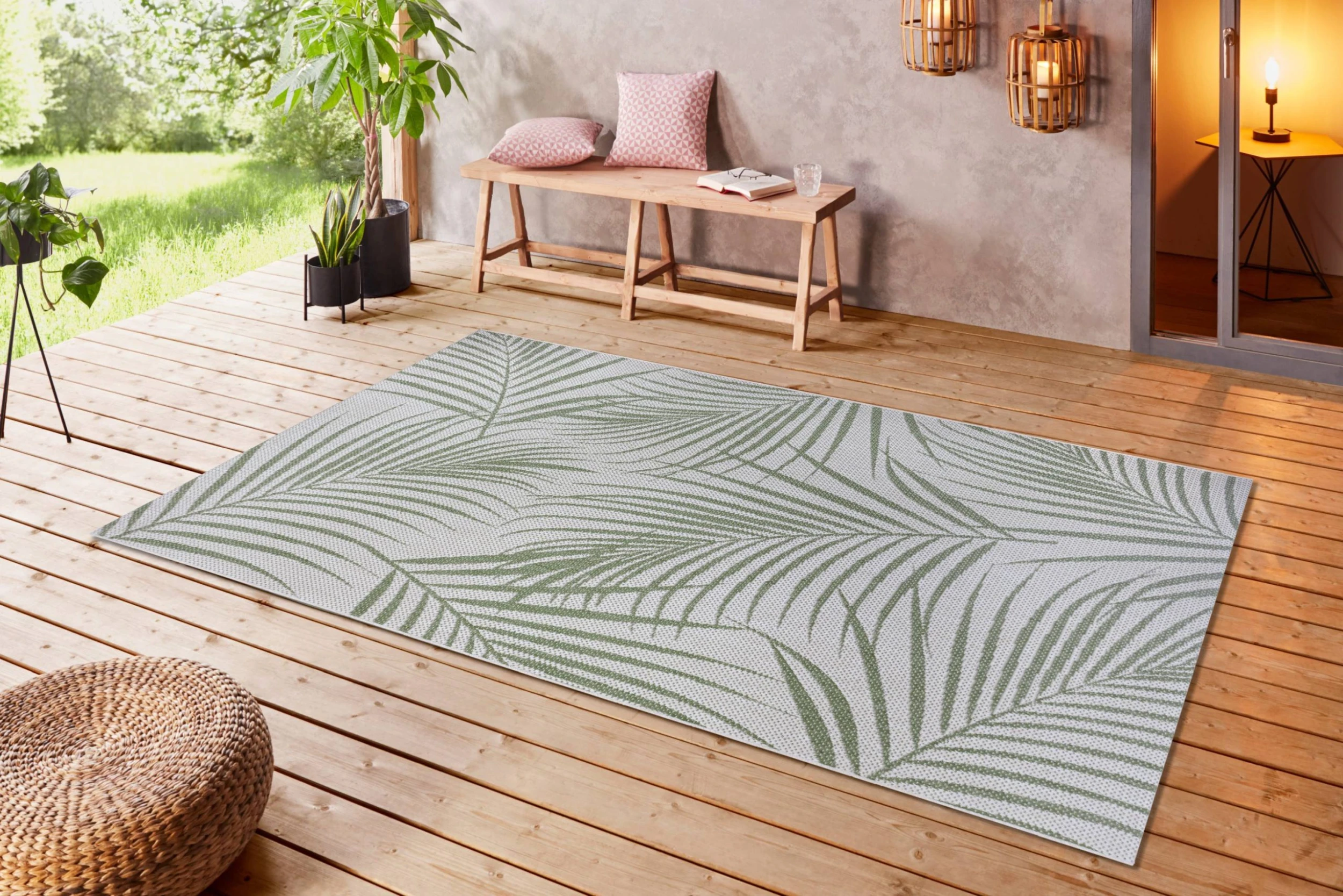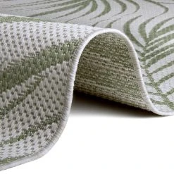 Egal, ob drinnen oder draußen, im Garten, auf der Terrasse, im Wohnzimmer oder Esszimmer – Das Blätterdesign des Teppichs passt überall perfekt hin.