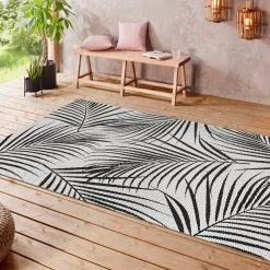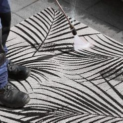 Egal, ob drinnen oder draußen, im Garten, auf der Terrasse, im Wohnzimmer oder Esszimmer – Das Blätterdesign des Teppichs passt überall perfekt hin.