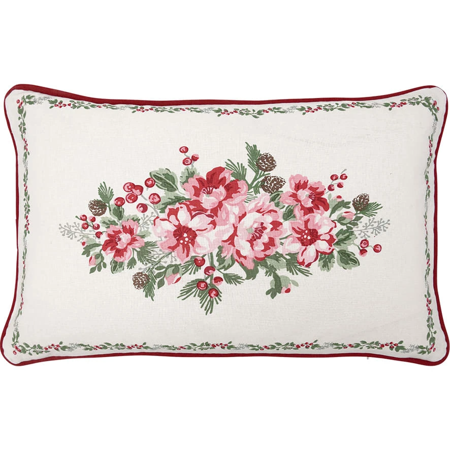 Mit einem großen, attraktiven Blumenschmuck in Rot und Grün zieht das rechteckige Greengate Kissen Charline die Blicke auf sich.
