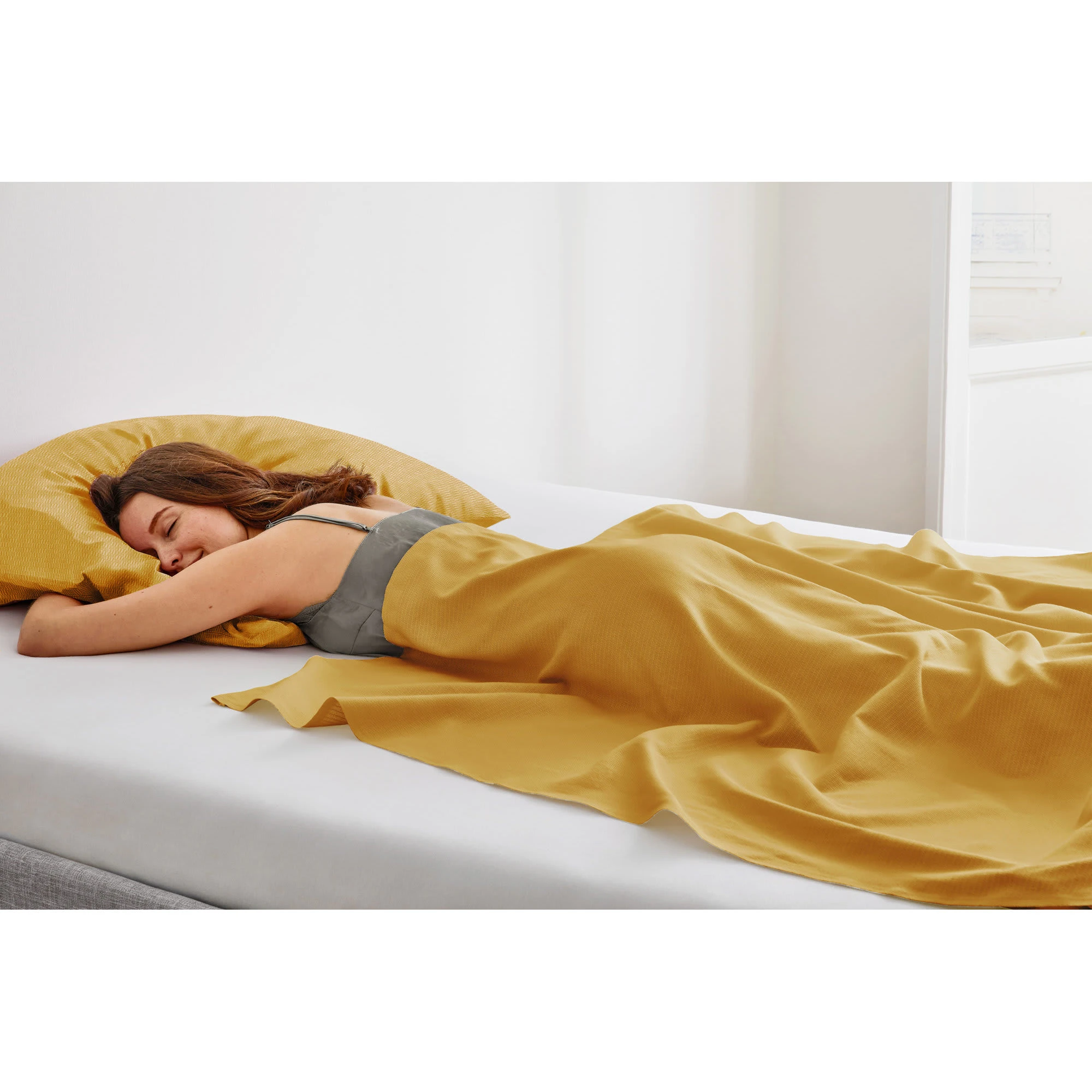 Sommerdecke. Dieses vielseitige Sommertuch mit luftiger Webstruktur sorgt für eine optimale Luftzirkulation. Gerne decken Sie sich mit der federleichten Decke zu. Sie hat einen angenehmen Griff, ist hautfreundlich und temperaturausgleichend. Rundum mit schmalem Saum eingefasst.