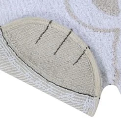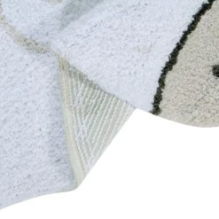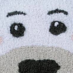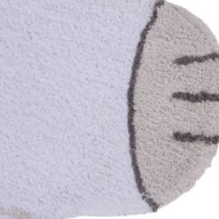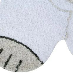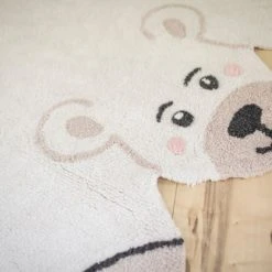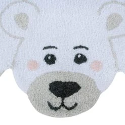 Waschbarer Teppich in Form eines Eisbären, in der Farbe Weiß mit Details in Dunkelgrau und Leinen