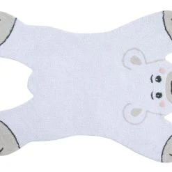 Waschbarer Teppich in Form eines Eisbären, in der Farbe Weiß mit Details in Dunkelgrau und Leinen
