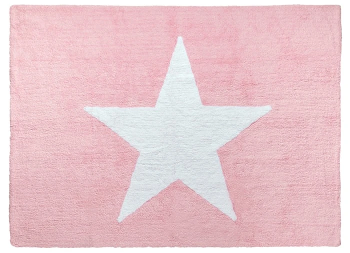 Ein großer Stern zeichnet sich auf einem rechteckigen, pastellfarbenen Hintergrund aus und schafft eine elegante Stimmung für Baby- und Kinderzimmer… Ein waschbarer Teppich für die Kleinen