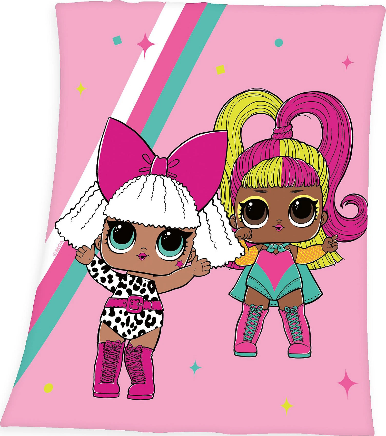 Diese Decke besticht mit komfortablen und weichen Eigenschaften, die zum Kuscheln perfekt sind. Der anschmiegsame Fleecestoff hält schön warm und sorgt so für eine wohlige Atmosphäre. Alle L.O.L. Surprise Fans werden sich über das coole Motiv mit den beiden tanzenden Mädels mit ihren niedlichen großen Augen freuen.