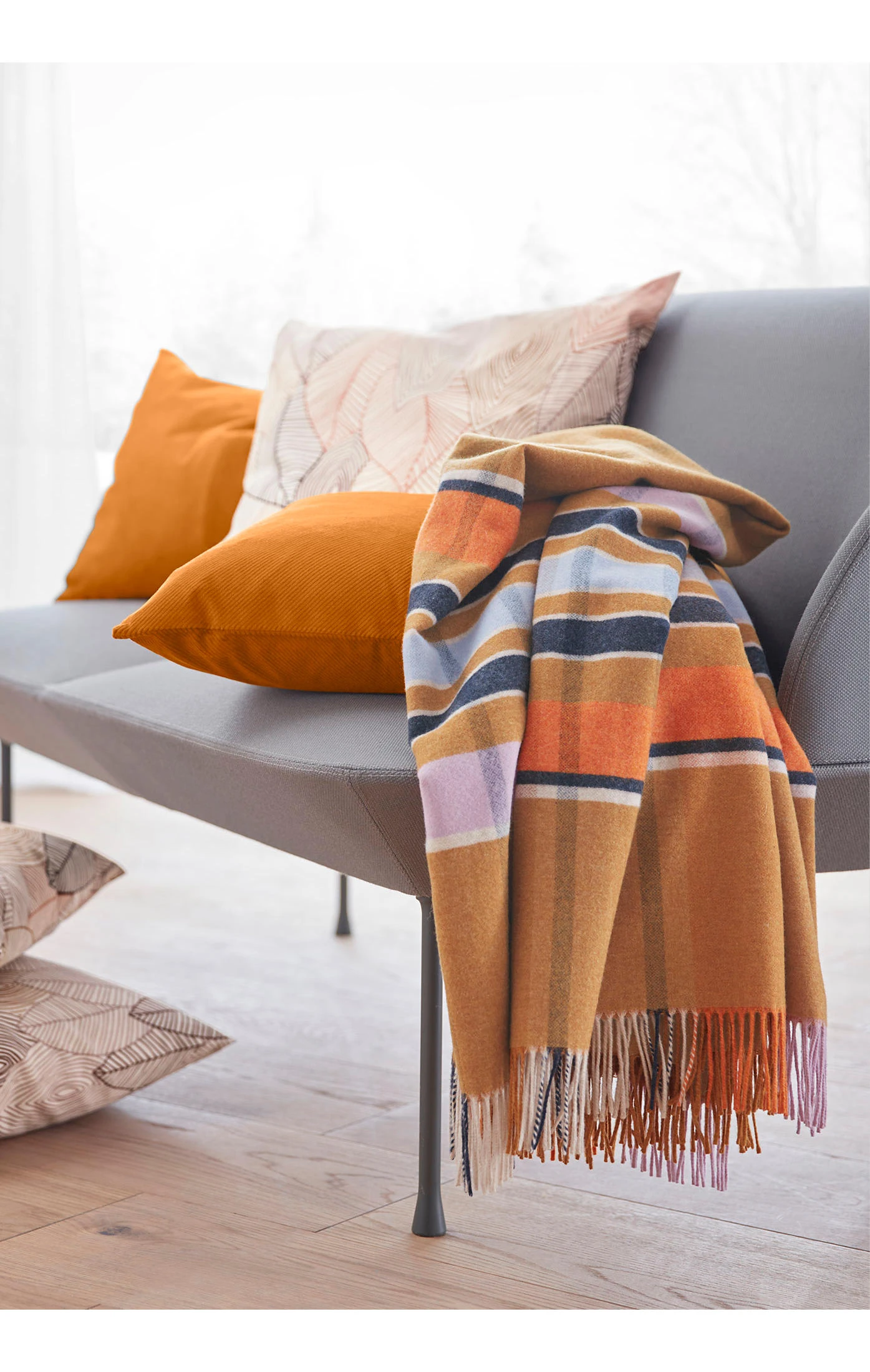 Die edle Decke Arthur ist eine wohlig-warme Umarmung und das Must-Have Piece der Wintersaison. Sie ist ein klassisches Wollplaid mit Fransen und doch noch so viel mehr. Wärmespender, unschlagbares Kuschel Erlebnis und graphisch ein absolutes Highlight. Waagerechte und senkrechte Linien ergeben ein klassisches, modernes Muster mit kontrastreichen und doch beruhigenden Farben. Die Trendfarben der Saison in feiner Merinowolle aus Litauen erschaffen im ganzen Raum eine weiche und einzigartige Atmosphäre. Ein Verwöhnprogramm für die Seele. Merinowolle ist wegen ihrer Feinheit und Weichheit die feinste Schafwollqualität. Sie zeichnet sich durch besondere Gleichmäßigkeit, Elastizität und Leichtigkeit aus. Daher verwenden wir sie bei hessnatur liebend gern für Heimtextilien. Dank unserem langjähriger, RWS zertifizierten, Partner in Litauen tun wir so der Natur ganzheitlich Gutes.