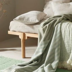 Dieses tolle Plaid aus feinster Bio-Merinowolle hat diagonale Streifen, die durch die Webart aus mehreren Farben zustande kommt. Die Decke ist flauschig weich und doch sind beide Seiten unterschiedlich: Eine helle und eine dunkle Seite laden ein, beim Dekorieren damit zu spielen. Merinowolle ist aufgrund ihrer Faser-Feinheit und der unvergleichlichen Weichheit die feinste unter den Schafwollqualitäten. Sie zeichnet sich durch besondere Gleichmäßigkeit, eintr hohen Elastizität und Leichtigkeit aus. Daher verwenden wir sie bei hessnatur liebend gern für unsere Home-Textilien.
