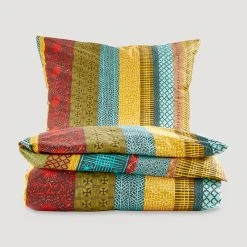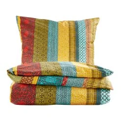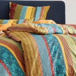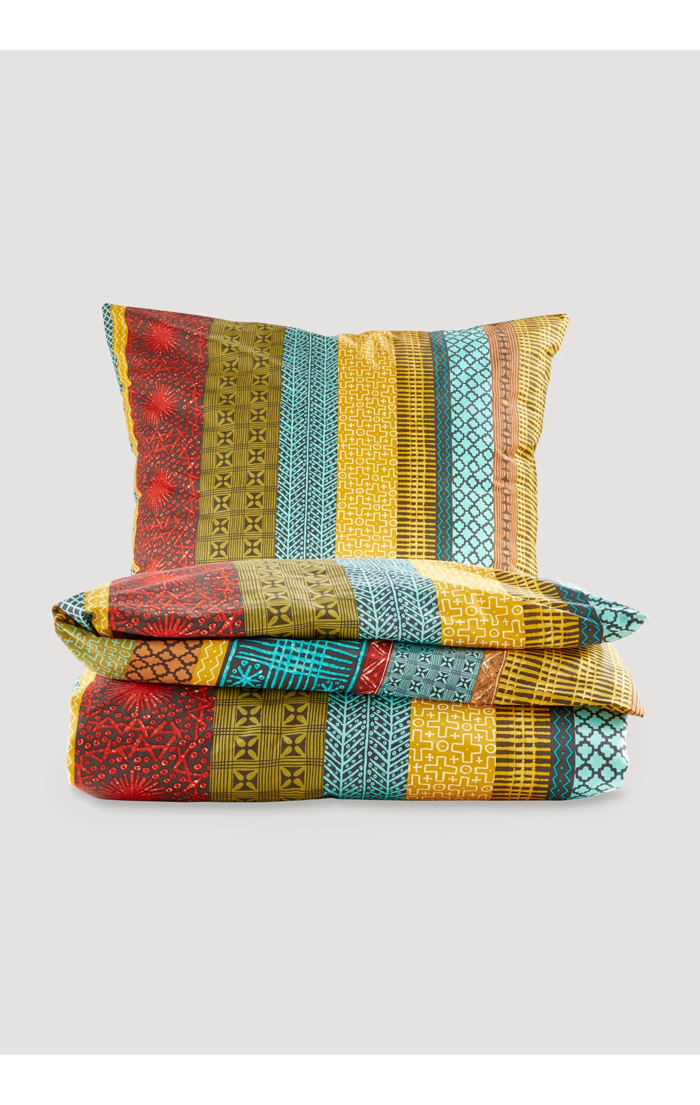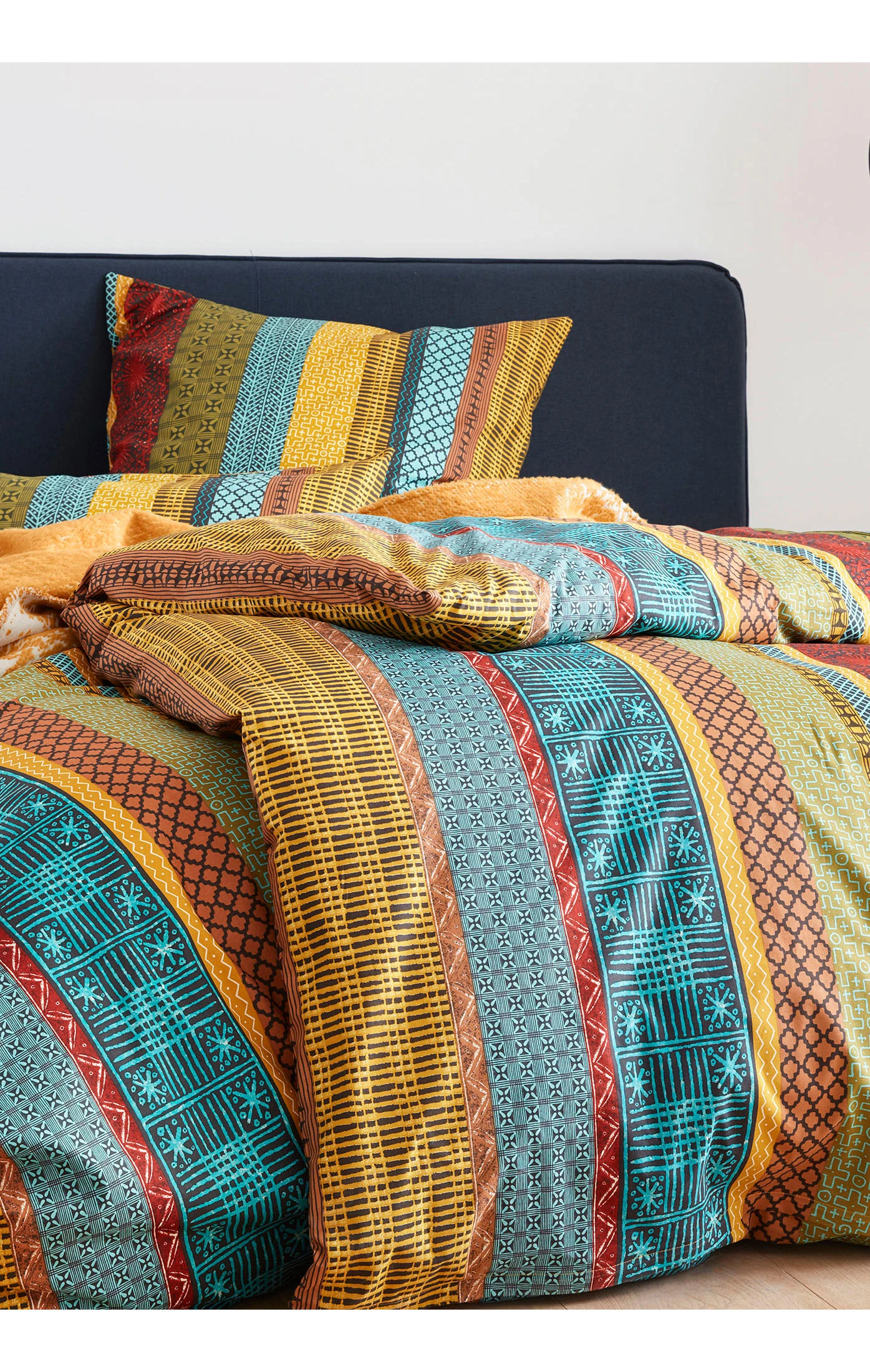 Längs gestreifte Musterbordüren, die wie große Holzstempeldrucke wirken. Unser Druck auf glattem Renforcé-Gewebe begeistert mit seiner Farbigkeit und dem Mustermix. Mit nahtfeinem Reißverschluss zum einfachen Beziehen. Einfach eine zeitlose Bettwäsche und ein beliebter hessnatur Klassiker. Was uns wichtig ist: Unsere Bettwäsche wird ohne optische Aufheller oder Bleichmittel verarbeitet – und auch die Farben sind frei von bedenklichen Stoffen, produziert nach strengen ökologischen Richtlinien. Das ist einfach besser für Mensch und Umwelt.