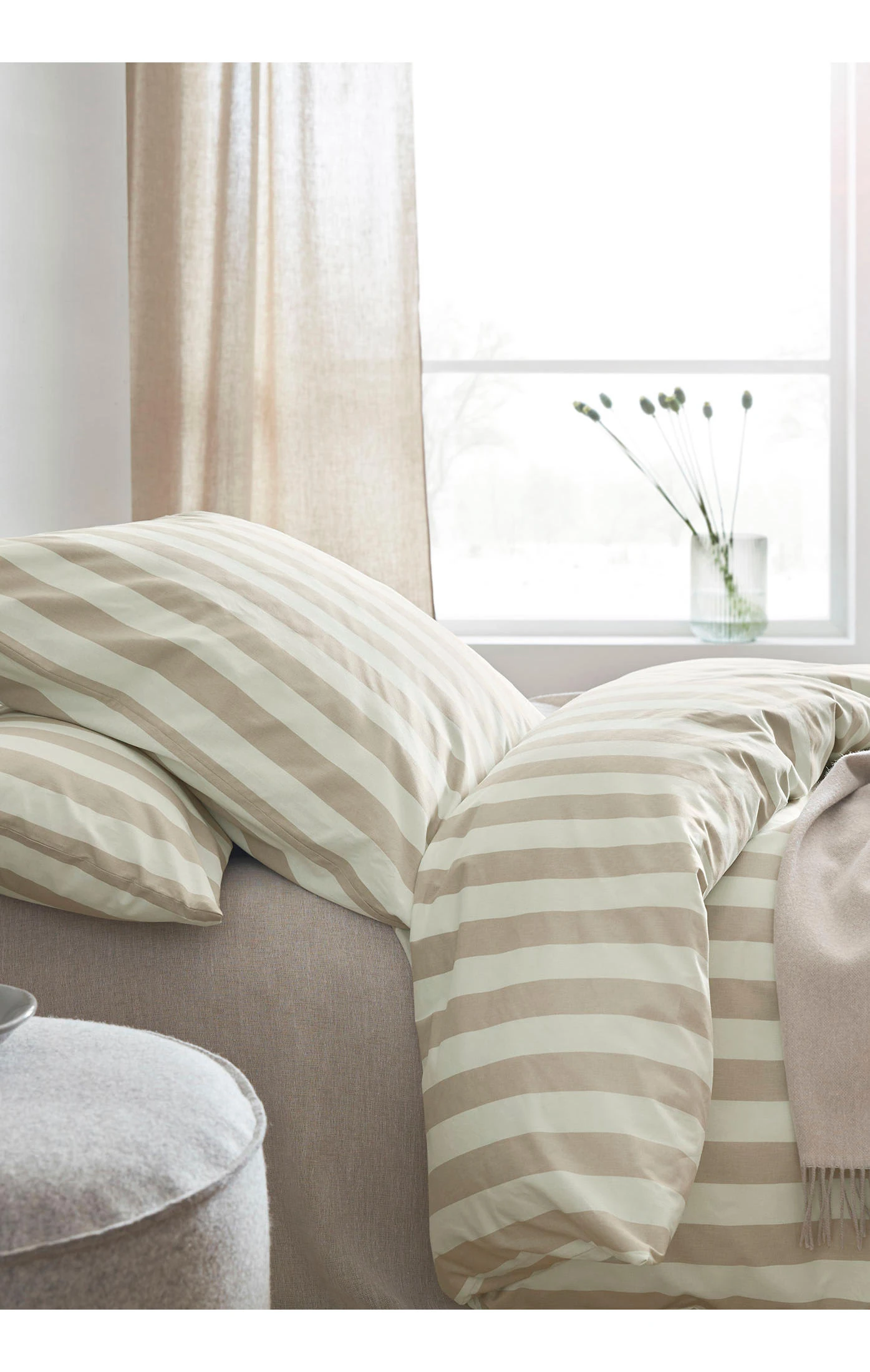Blockstreifen, die uns in Urlaubslaune bringen – oder morgens entspannt aufwachen lassen. Diese Bettwäsche strahlt mit ihrem klaren Dessin Modernität und unbeschwerte Leichtigkeit aus. Die glatte Renforcégewebe in Bio-Qualität ist wunderbar atmungsaktiv, hautsympathisch und temperaturausgleichend – ideal fürs ganze Jahr. Unsere Bettwäsche wird ohne optische Aufheller oder Bleichmittel verarbeitet – und auch die Farben sind frei von bedenklichen Stoffen, produziert nach strengen ökologischen Richtlinien. Fürs gute Gefühl auf der Haut und für ein nachhaltig besseres Leben!