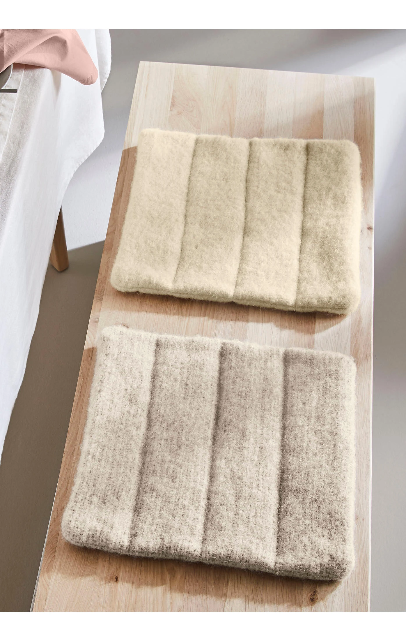 Der hessnatur Klassiker hat eine neue Steppung bekommen. Das Filzkissen für den Stuhl oder die Sitzbank, welches in einem wild sprudelnden Gebirgsbach dicht gewalkt wird, bis es dichter Wollwalk geworden ist. Die Weiterverarbeitung dieses Wollwalks erfolgt in einer kleinen deutschen Manufaktur. Wollwalk schafft ein ideales Hautklima, denn Schurwolle entspricht in ihren Eigenschaften denen der Haut. Die isolierende und wärmespeichernde Woll-Qualität stammt von einer alten Schafrasse, sie ist robust und langlebig. Für Kissen, die Sie ein Leben lang begleiten.