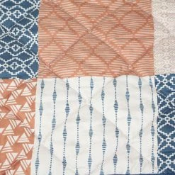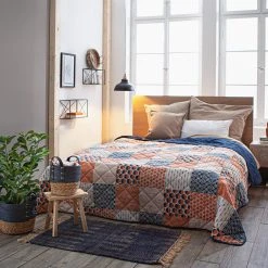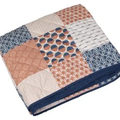 wattierte Steppdecke, Patchwork-Look mit grafischen Mustern, trendige Braun- und Blautöne, Rückseite uni dunkelblau, 100% Polyester