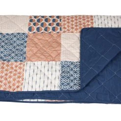 wattierte Steppdecke, Patchwork-Look mit grafischen Mustern, trendige Braun- und Blautöne, Rückseite uni dunkelblau, 100% Polyester