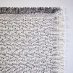 Wendedecke, tolles Webmuster, beige, grau, zweifarbige Fransen, 80% Baumwolle, 20% Polyester