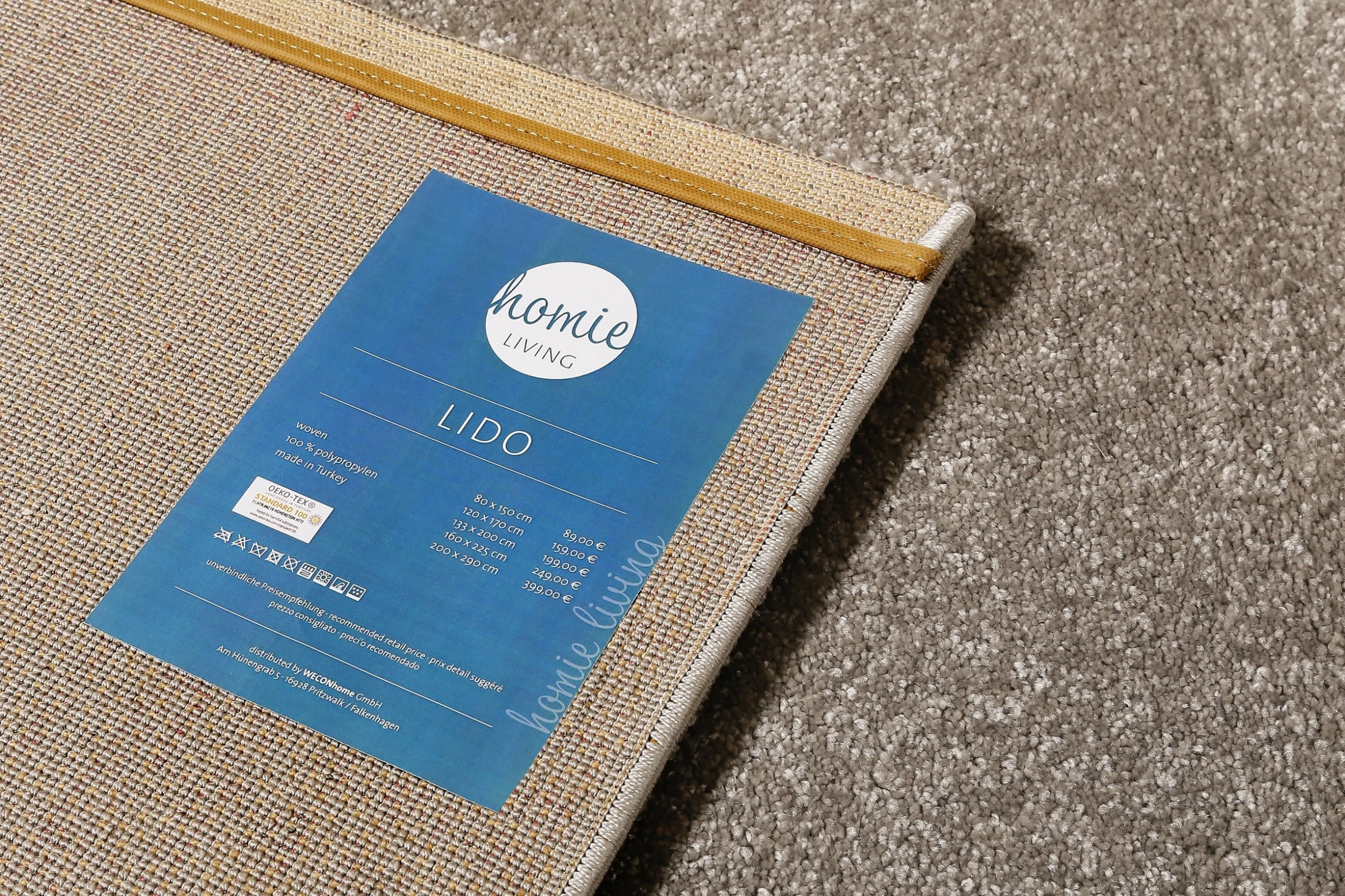 Der moderne, komfortable Kurzflor-Teppich „Lido“ von Homie Living ist ein Teppich, der durch seine Zeitlosigkeit und Gemütlichkeit begeistert. Mit seinen 1,8 Zentimetern Florhöhe ist er ein unkomplizierter, angenehmer und gleichzeitig besonderer Teppich für Wohn- und Schlafzimmer, Eingangsbereiche und Kinderzimmer. Schadstoffgeprüft und nach Ökotex Standard 100 zertifiziert überzeugen alle Modelle des Kurzflor-Teppichs Lido durch ihre Robustheit und ihre pflegeleichte Art. Lido eignet sich für Fußbodenheizungen und ist garantiert fusselfrei.