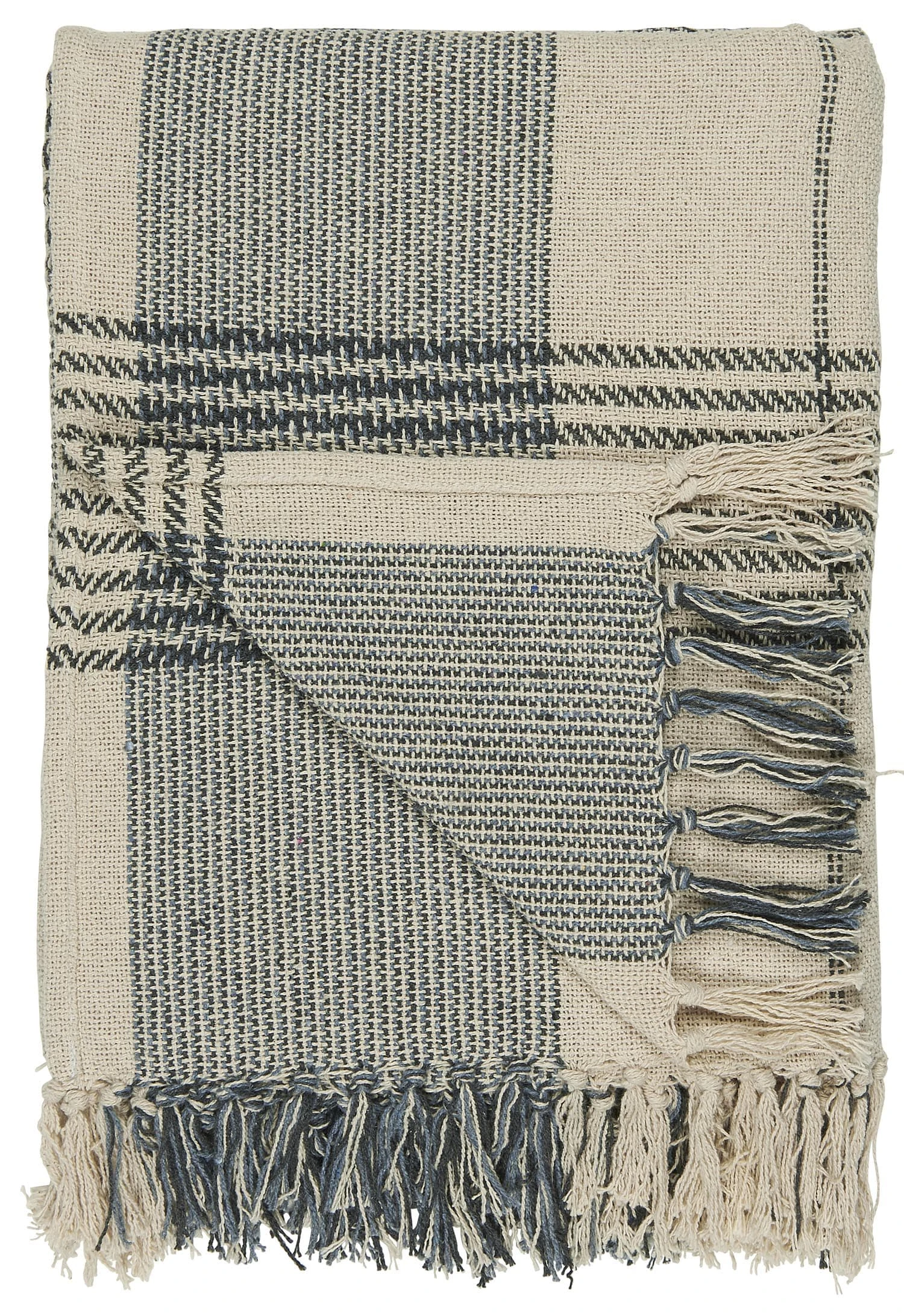 IB Laursen Decke in Creme Blau mit Karo Muster aus Baumwolle