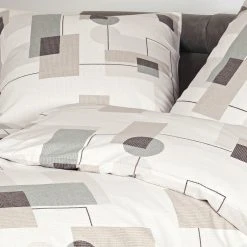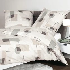 Janine Feinbiber Bettwäsche. Das grafische Muster in natürlicher Farbstellung sorgt für eine entspannte Schlafatmosphäre. Wolkenweich und flauschig umgibt Sie die samtig aufgeraute Oberfläche. Fühlen Sie die Geborgenheit und Wärme. Die hochwertige Qualität ist atmungsaktiv, saugstark und temperaturausgleichend. Gerne kuscheln Sie sich hinein und genießen ein wohliges Schlaferlebnis. Bügelleicht und mit praktischem Reißverschluss für einfaches Beziehen.
