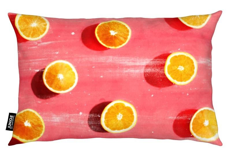 Rechteckiger Kissenbezug mit All-Over-Druck und Reißverschluss. Bezug aus weichem, allergikergeeignetem Material. Füllkissen aus Kunstfaser. Versteckter Reißverschluss.